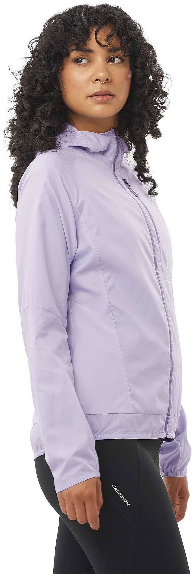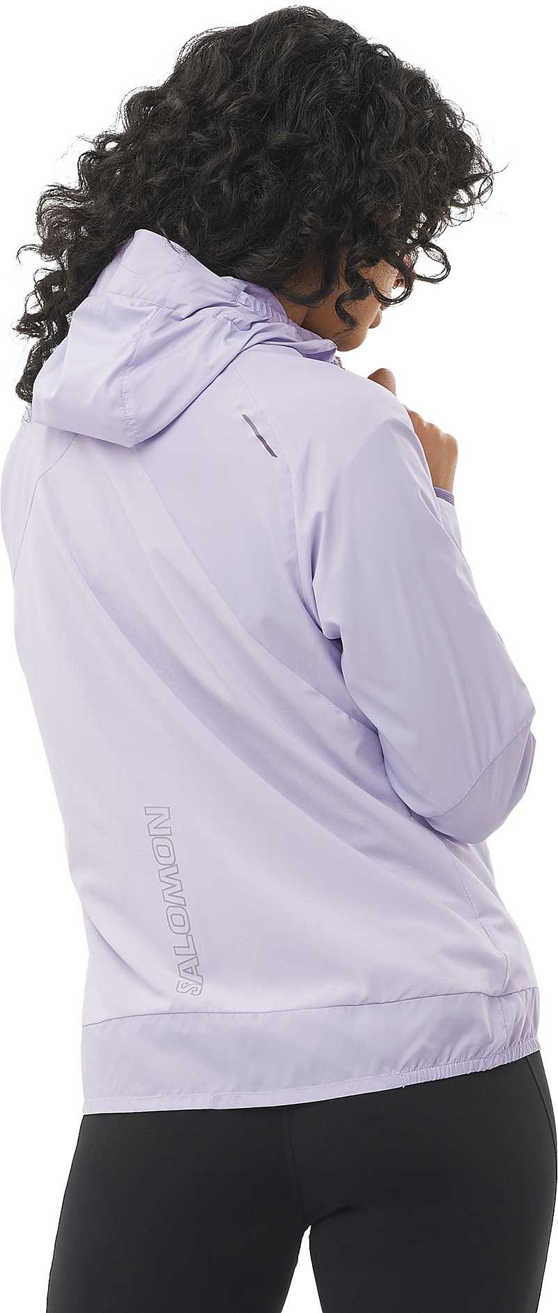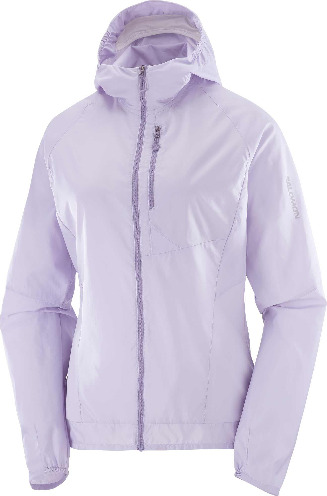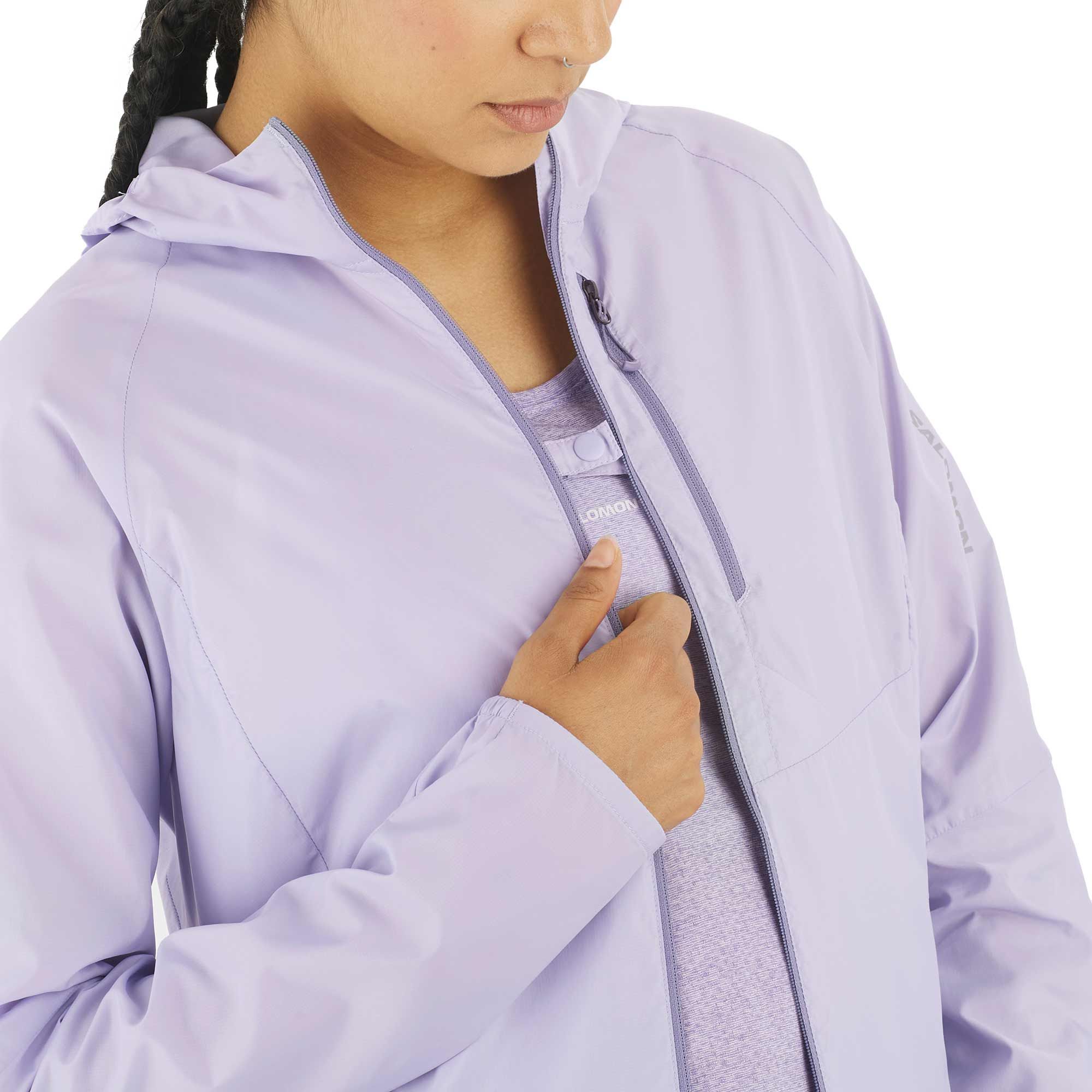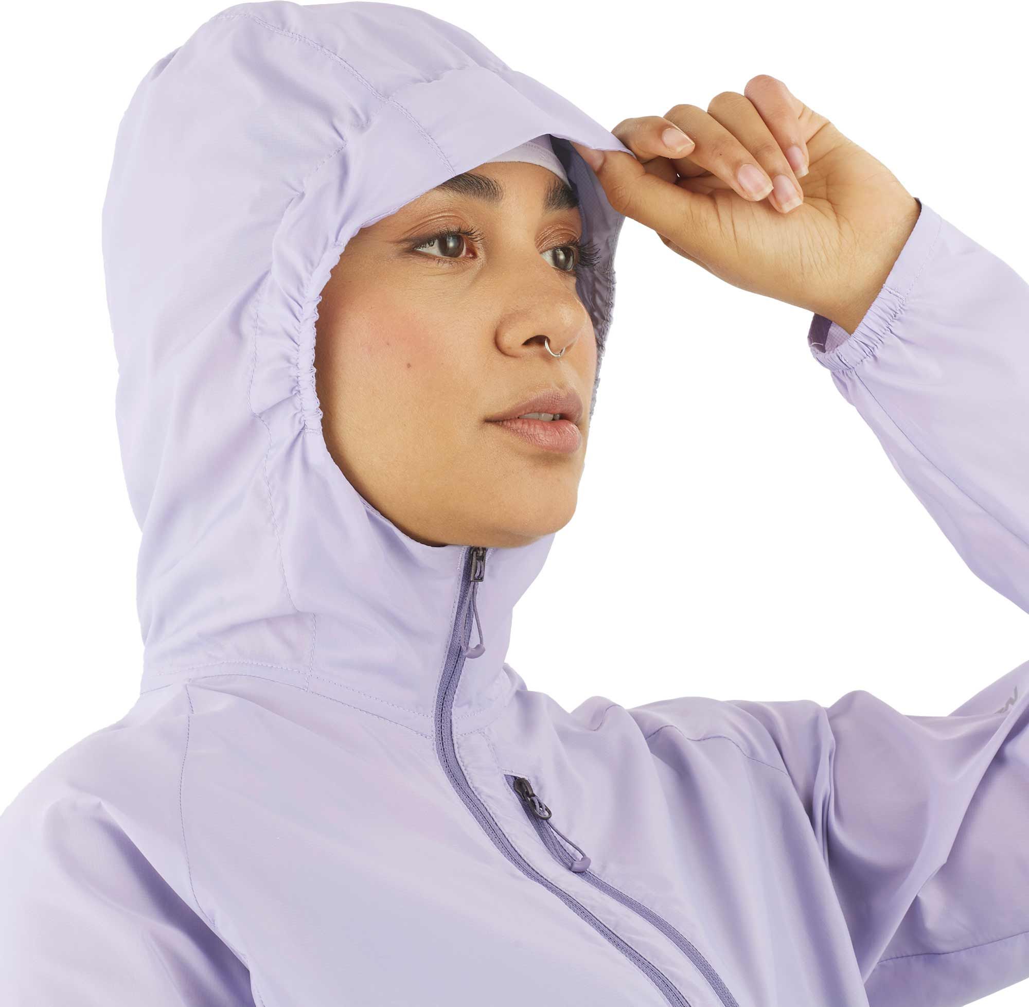 Veste coupe-vent Salomon Bonatti Cross Wind femme ultra-légère en AdvancedSkin Shield, stretch respirant, capuche et ourlets élastiqués pour la protection vent.