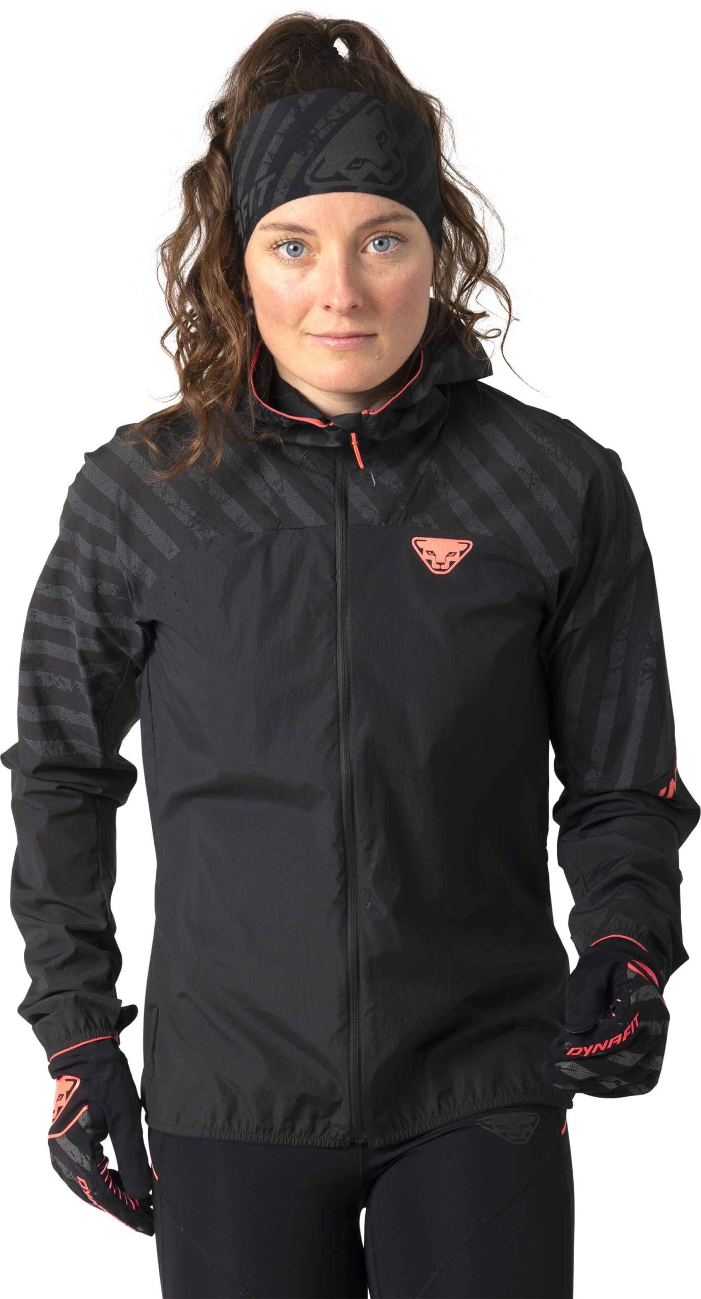 Veste coupe-vent Dynafit Trail Reflective Wind Jkt Black Out femme, légère et compressible, protège du vent tout en assurant respirabilité et liberté de mouvement pour le trail.