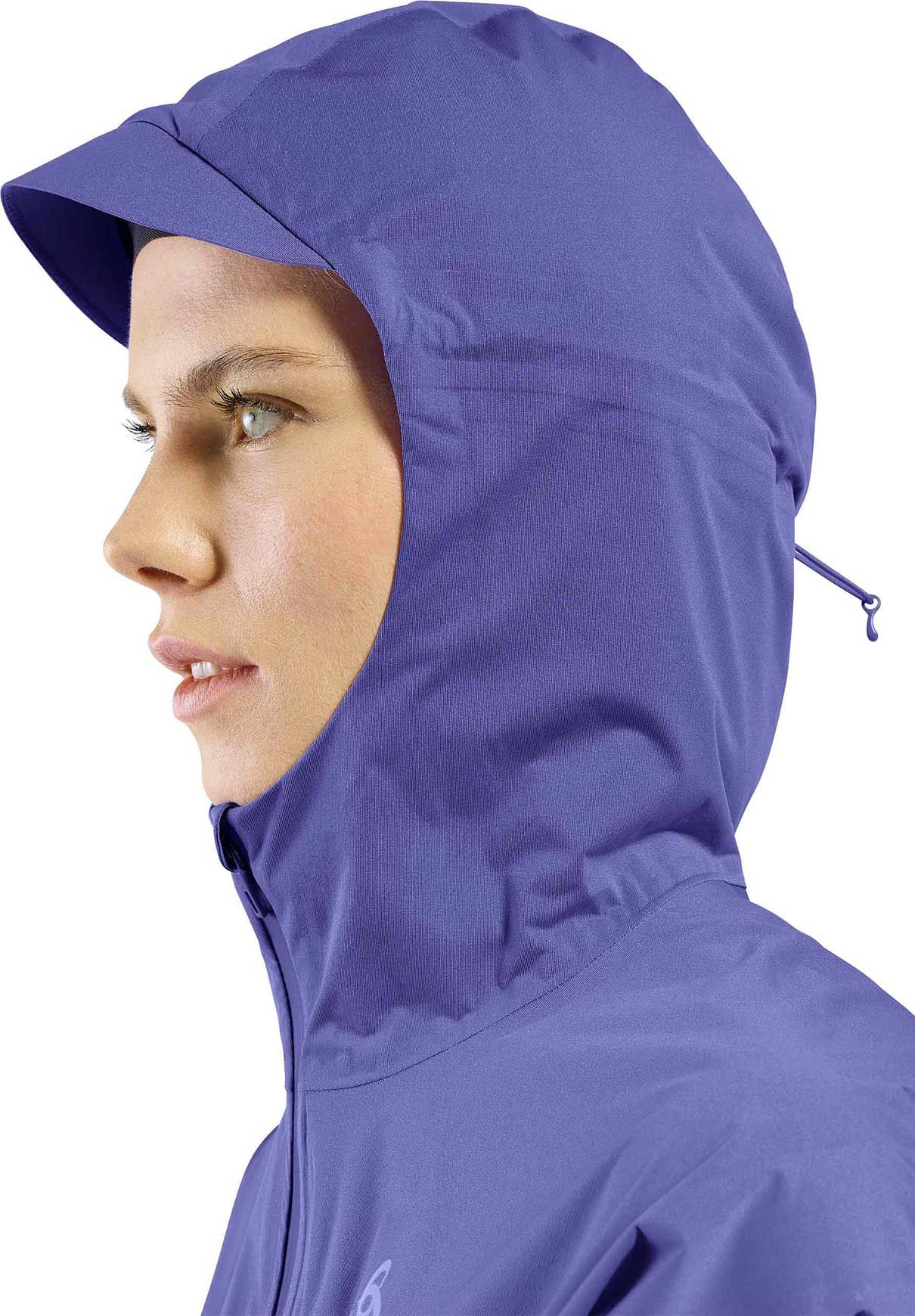 L’alliance de l’action et de l’esthétique caractérise cette veste. Sa coupe près du corps épouse la silhouette tout en préservant une amplitude de mouvements optimale. Des éléments fonctionnels en font un vêtement complet : capuche et ourlet réglables, zip étanche et pare-menton facial viennent assurer une protection optimale. La visibilité en conditions de faible luminosité est améliorée par des détails réfléchissants, apportant un plus en termes de sécurité. Enfin, sa capacité à se plier dans sa propre capuche en fait un article compact et aisément transportable.