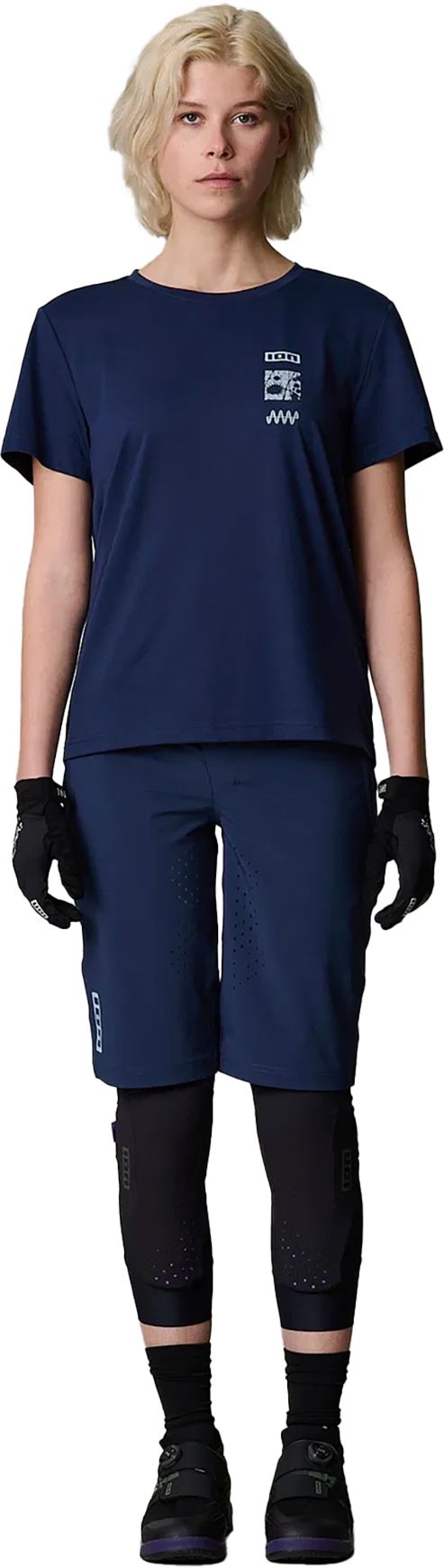 Short VTT femme ION Bike Shorts Ionic LT Midnight, coupe fuselée en tissu 4-way stretch recyclé Bluesign® ; AirFlow et DWR sans PFC pour respirabilité et déperlance, ceinture élastique, 2 poches zippées, liberté de mouvement assurée.