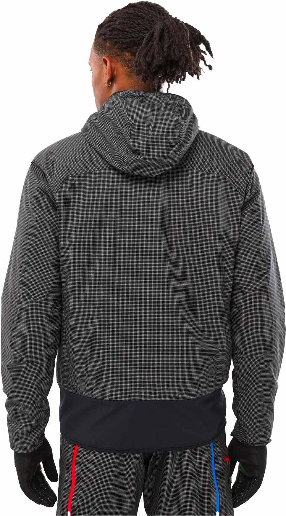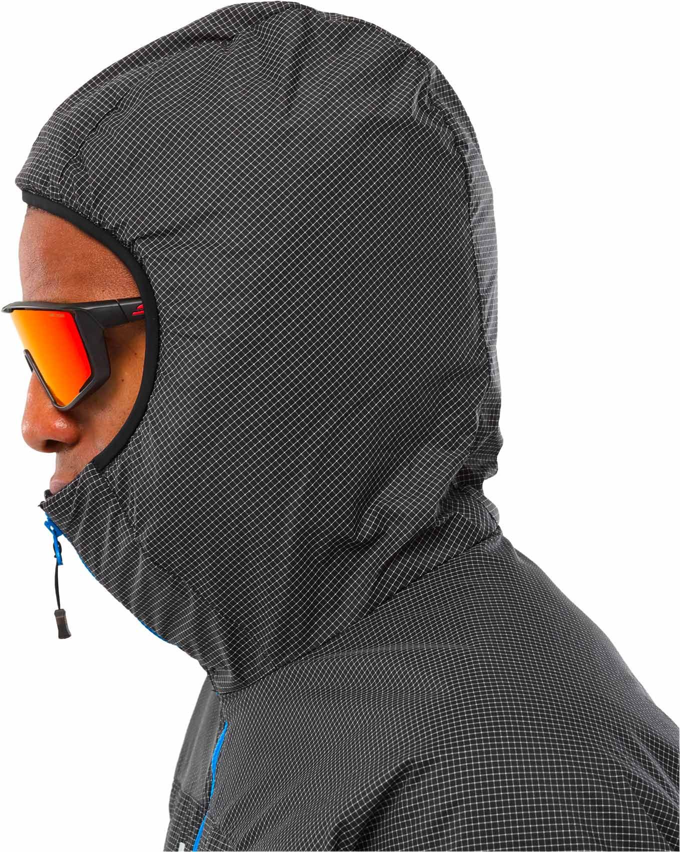 Le confort du port du baudrier est optimisé grâce à un empiècement stretch situé sur le bas de la veste. Raglan pour les manches, élastiquées aux poignets et à la capuche pour les finitions, multiples pour les poches : autant de caractéristiques qui font de cette veste légère une pièce chaleureuse et fonctionnelle, apte à suivre les alpinistes au cœur de leurs expéditions les plus engagées.