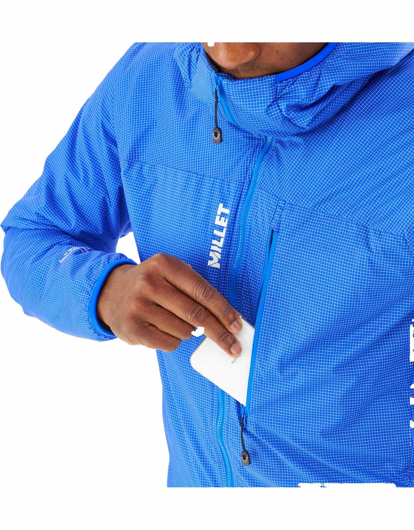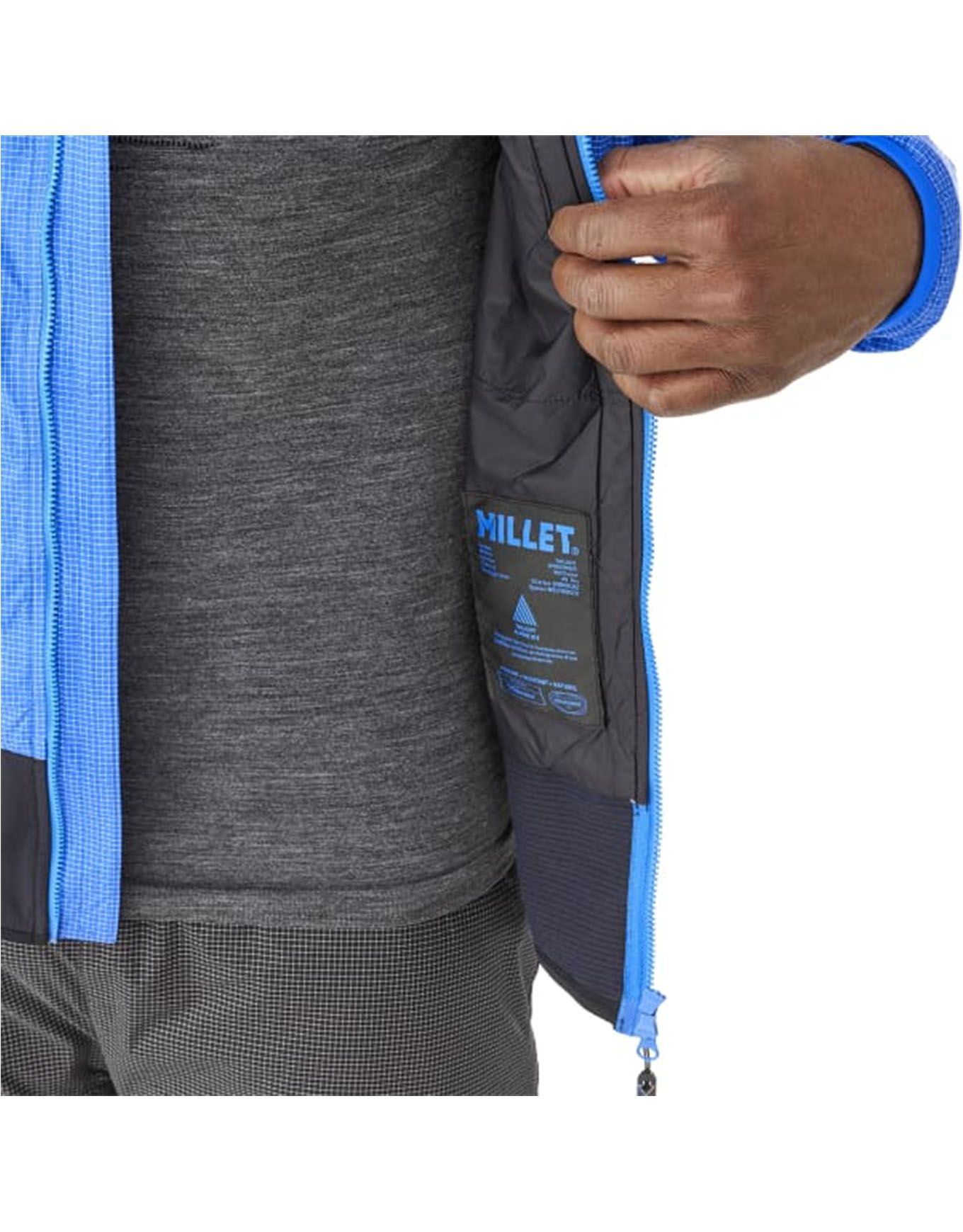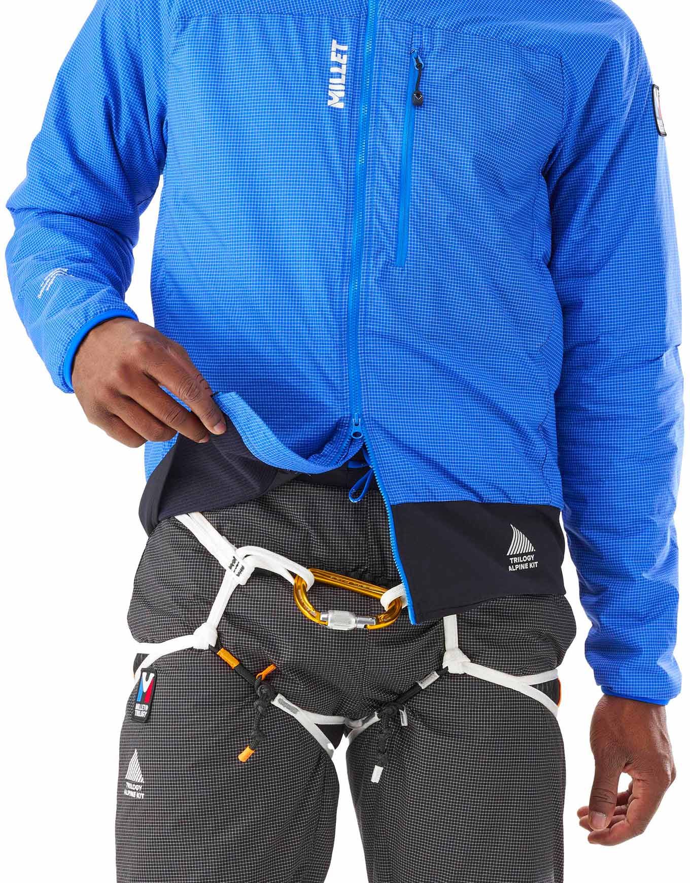 Millet Trilogy Jorasses Wool Hoodie Icon Blue/Black, doudoune alpine homme en Dyneema® ultralight et laine chaude, stretch baudrier-compatible, poches pratiques, poignets et capuche élastiqués.