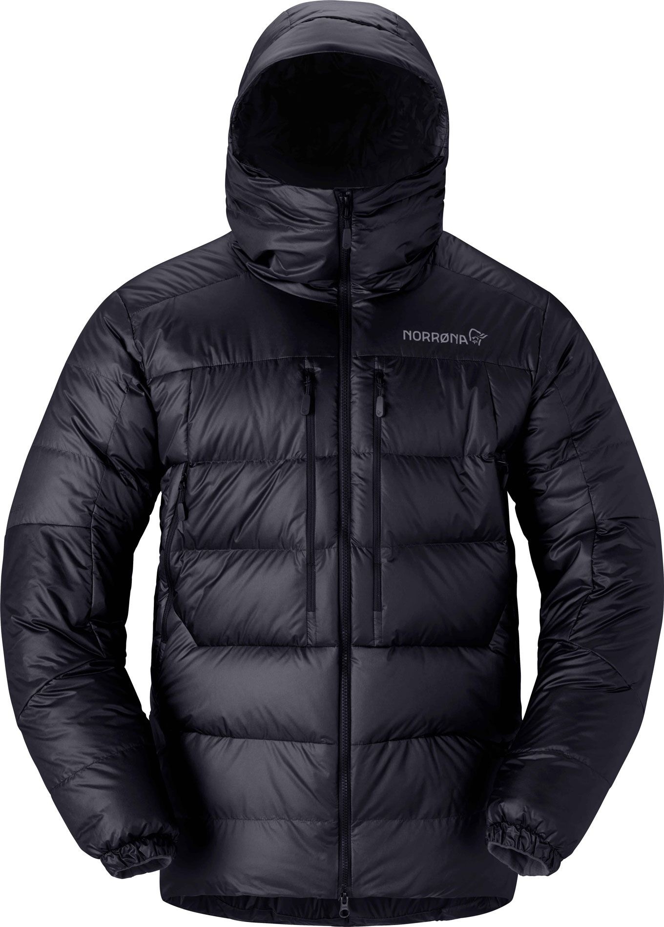 La doudoune Norrona Trollveggen Down800 Hood Caviar Black pour homme allie duvet 800 CUIN et tissu aeroDownproof pour un apport de chaleur optimal en alpinisme et activités outdoor par temps froid.