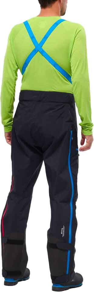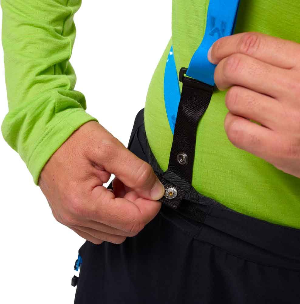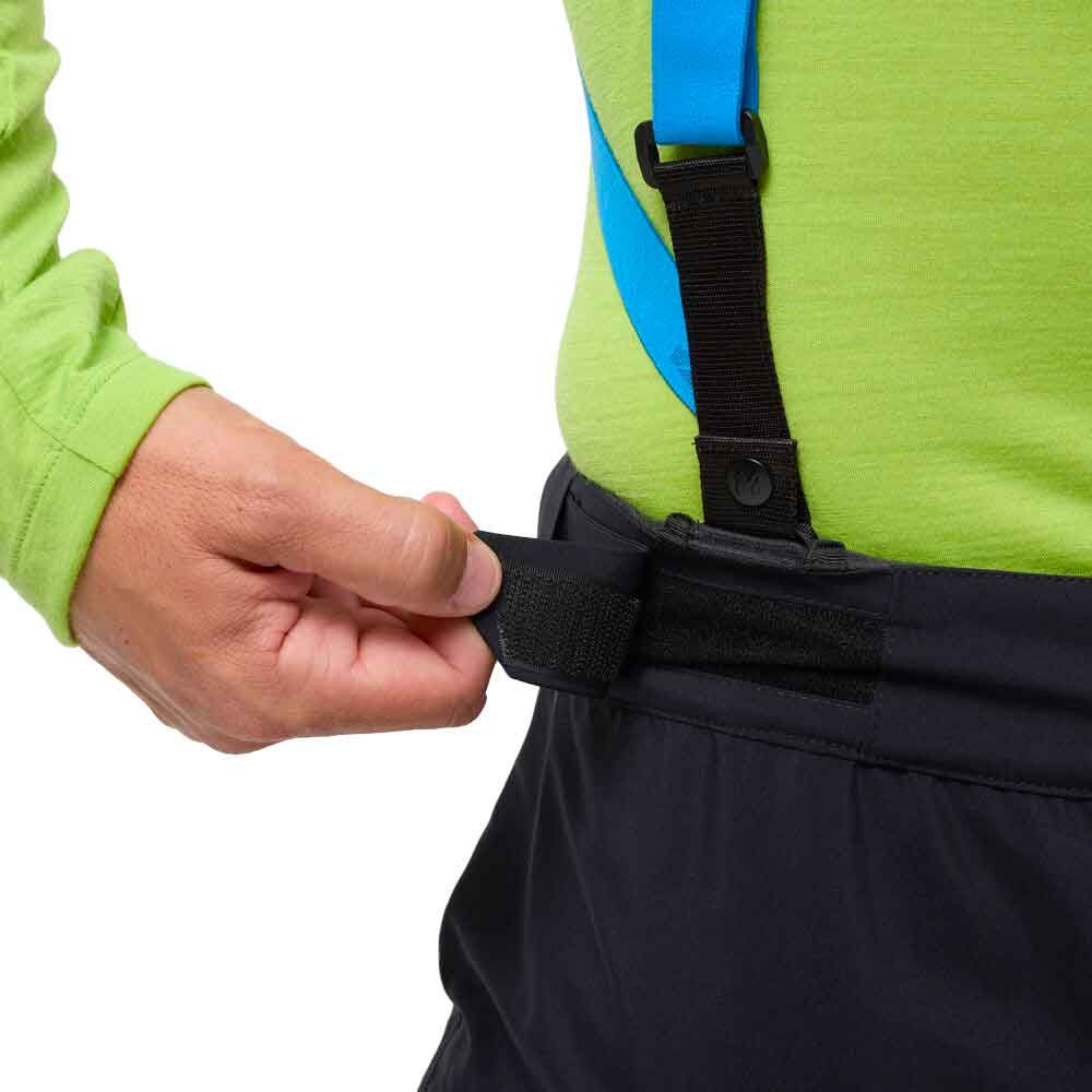 Deux poches cargo zippées positionnées sur les cuisses assurent un stockage sécurisé et fonctionnel, tandis qu’une ceinture ajustable accompagnée de bretelles détachables permettent de personnaliser le fit. La présence d’ouvertures latérales complètes facilite tant la mise en place qu’une aération maximale. La préformation au niveau des genoux amplifie l’amplitude des mouvements, et les protections anti-crampons en Cordura® assurent une durabilité maximale contre l’usure.