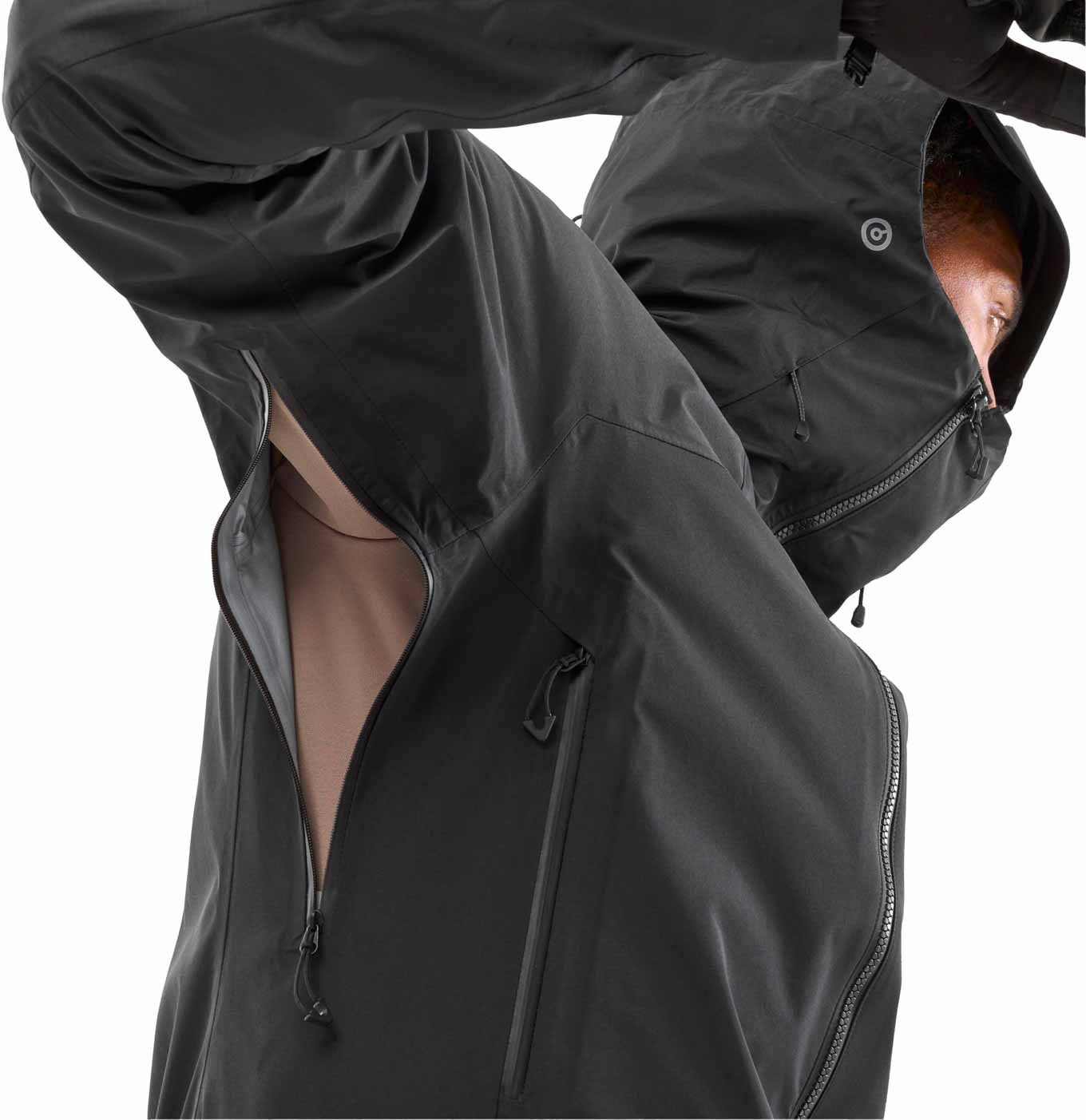 Même équipé d’un baudrier, l’accès aux deux poches mains zippées reste possible grâce à leur positionnement étudié. Sous les bras, des ouvertures de ventilation zippées permettent une régulation thermique optimale. Pour finir, poignets et bas de veste réglables assurent un ajustement précis et une protection maximale face aux éléments.