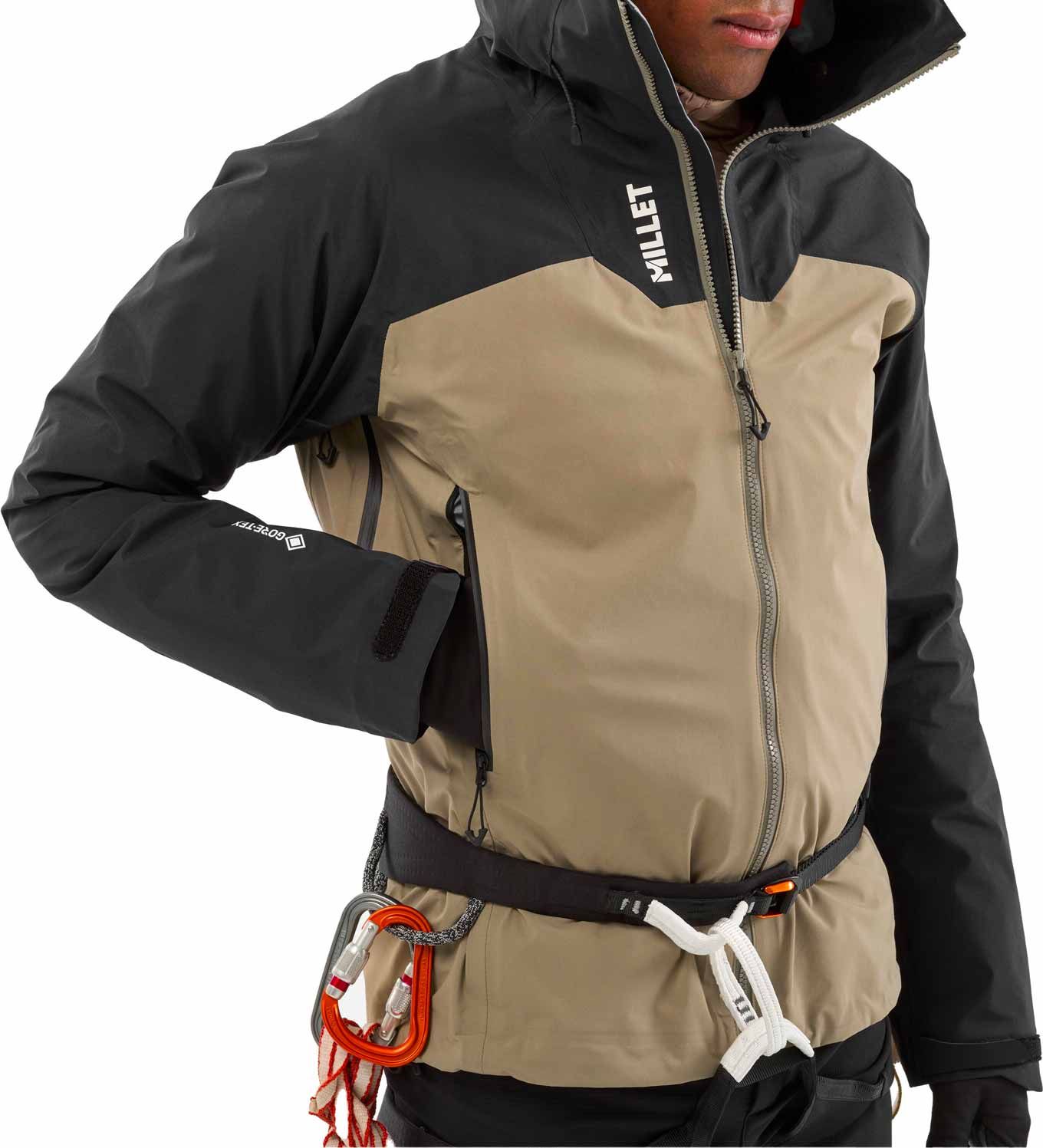 Veste d’alpinisme Millet Kamet GTX Jkt pour homme en tissu GORE-TEX ePE, manches raglans et coudes préformés pour liberté de mouvement, capuche casque-compatible, coutures thermosoudées, ventilations sous les bras.