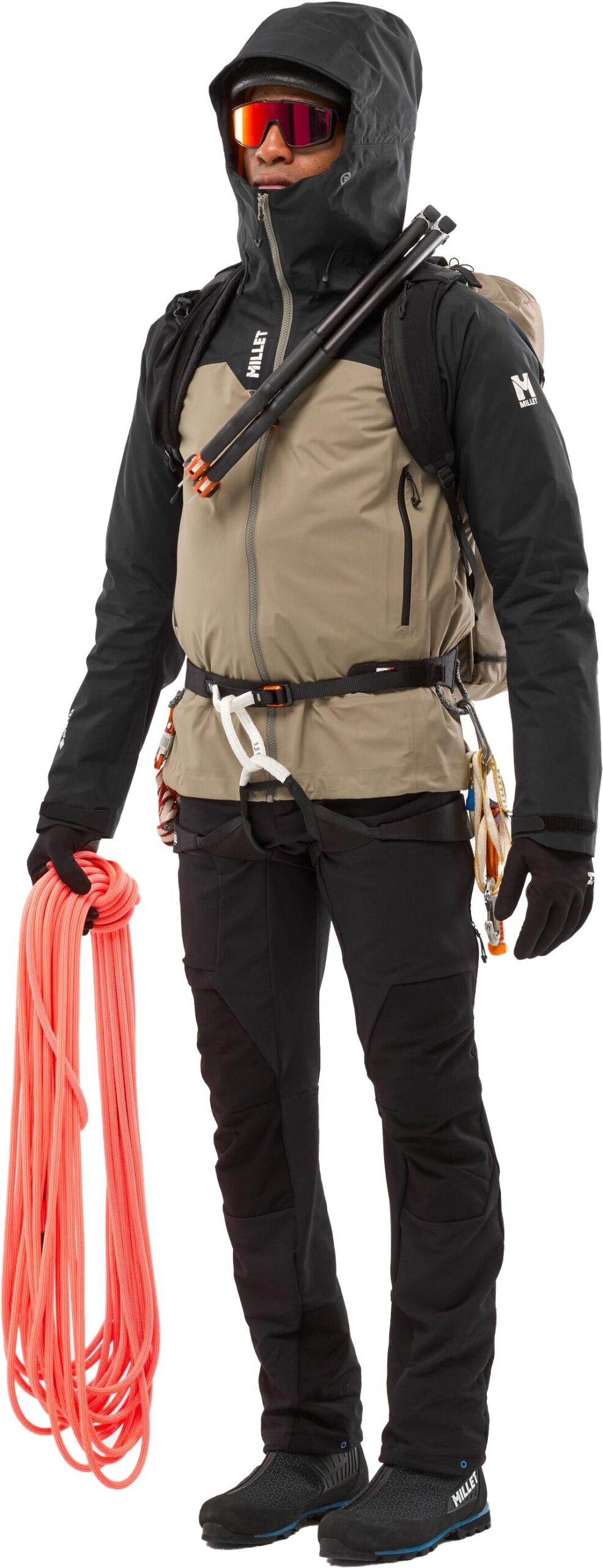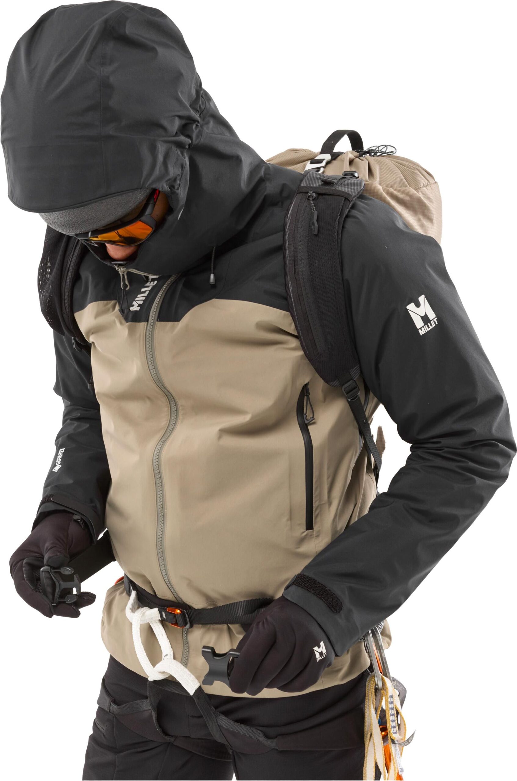 - Capuche d’alpinisme réglable, casque-compatible