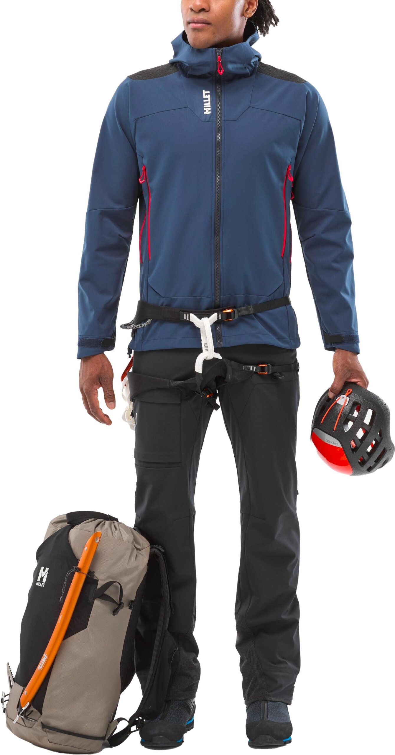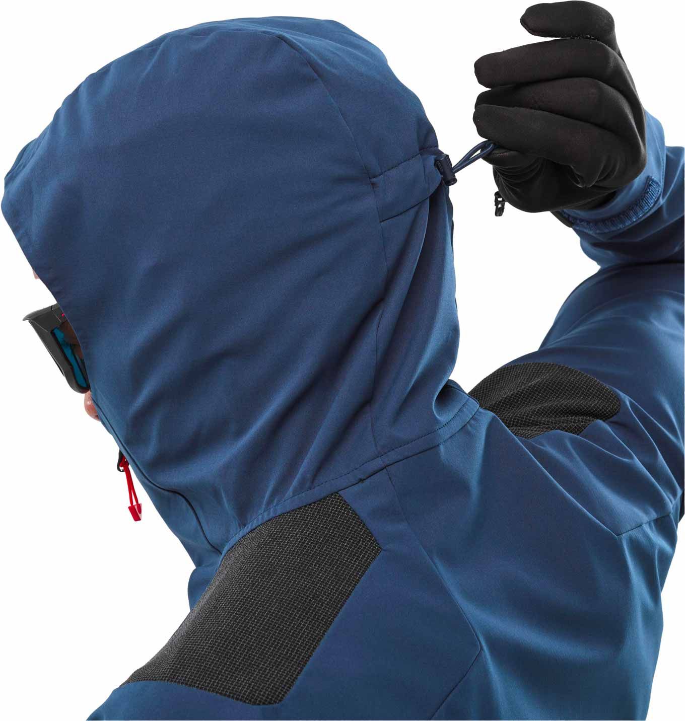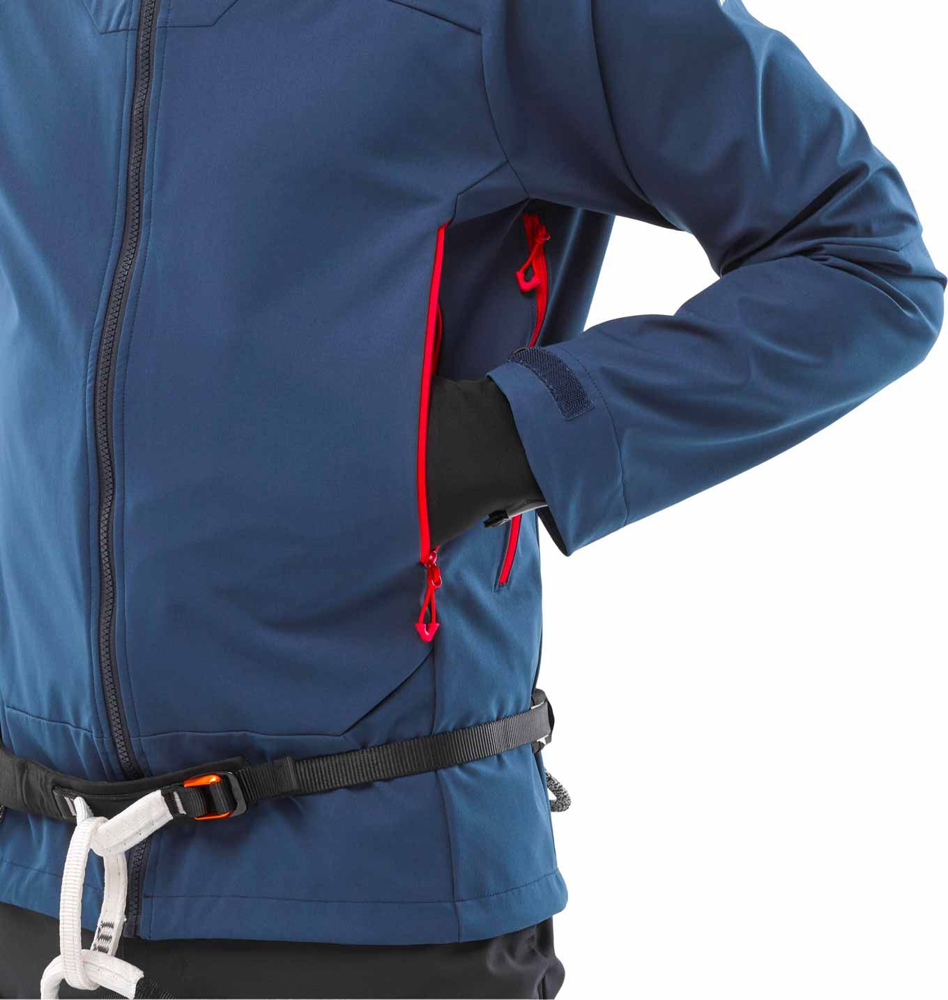 Une capuche à réglage 3D accompagnée d’une visière protectrice équipe cette veste, permettant de bénéficier d’un champ de vision optimal même par conditions météorologiques défavorables. On y trouve également deux poches mains zippées, placées de façon à rester accessibles avec un baudrier, ainsi qu’une poche intérieure zippée destinée à sécuriser les effets personnels.
