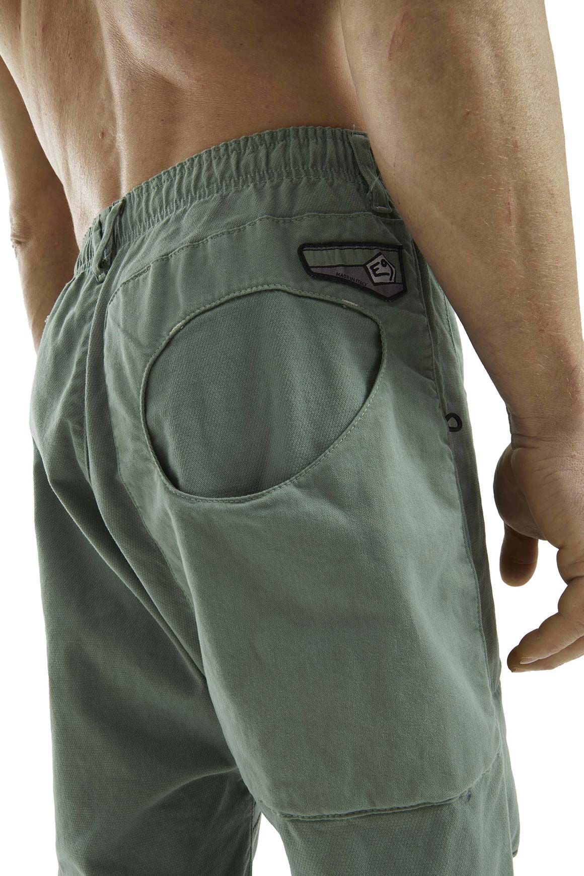Le pantalon d’escalade E9 Blat2 Crust homme allie coton bio et élasthanne pour un confort respirant et une liberté de mouvement totale. Il intègre deux poches latérales passepoilées, une poche arrière, porte-brosses latéraux et bas de jambe ajustables, adapté falaise et ville.