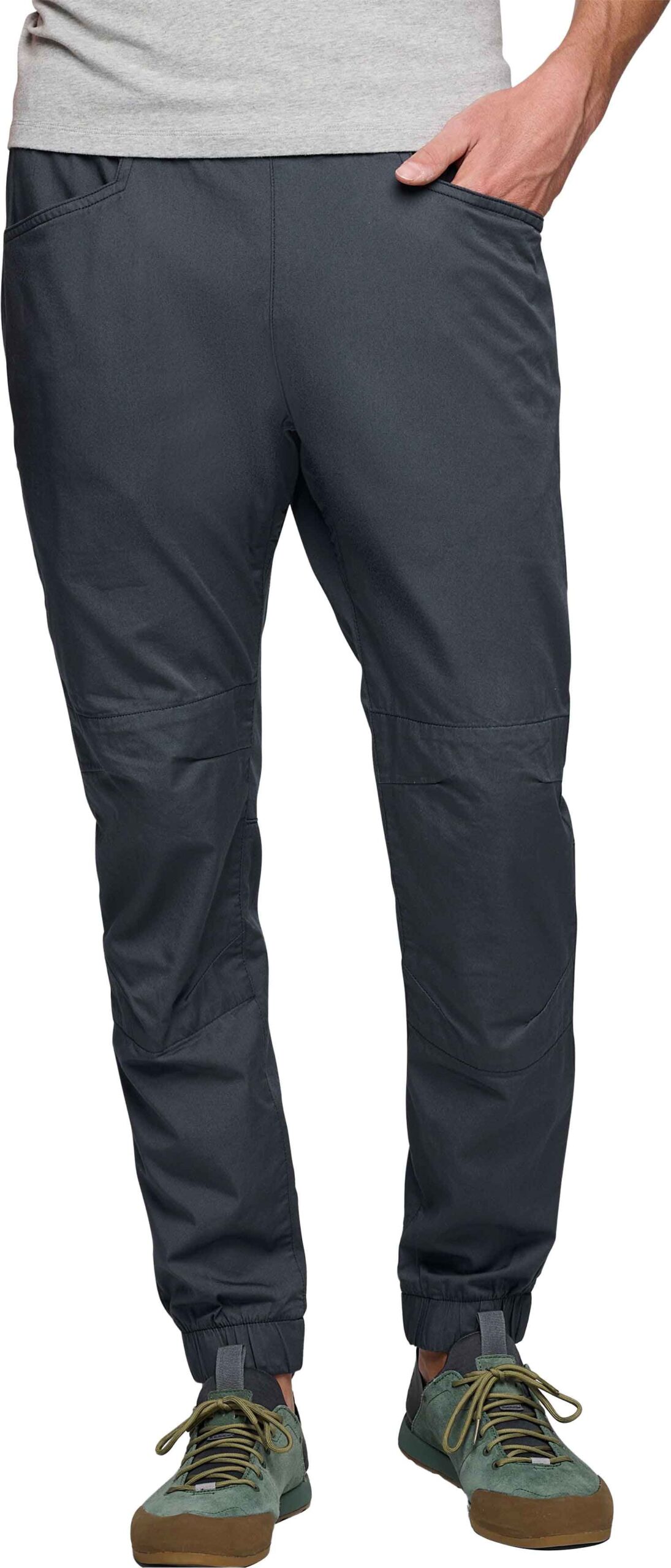 Pantalon Black Diamond Notion Pants Charcoal pour homme, conçu pour l’escalade en falaise ou en bloc. Coton biologique respirant, coupe ajustée avec genoux préformés, taille et chevilles ajustables, multiples poches.