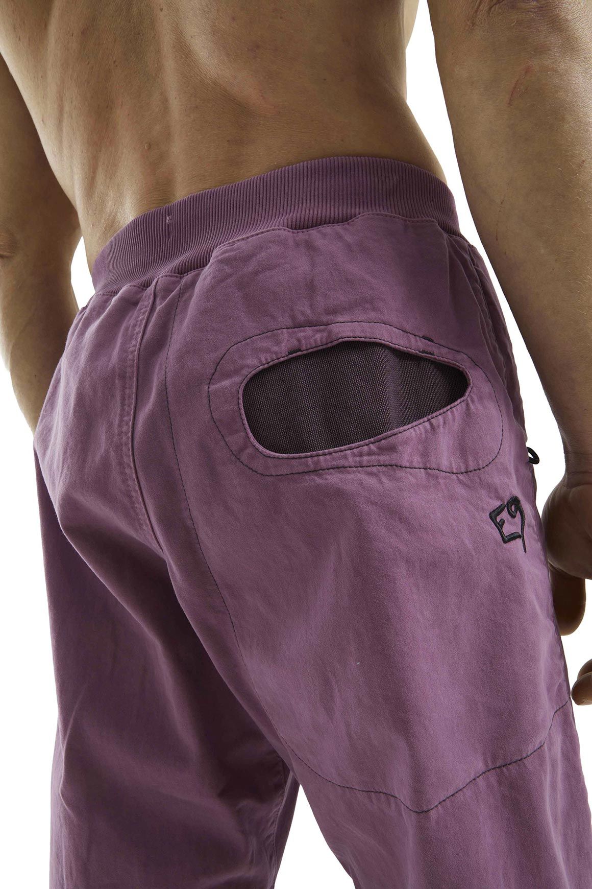 Tant sur la falaise qu’en milieu urbain, ce pantalon exprime l’esprit E9 : des équipements techniques dédiés à l’escalade arborant un design résolument citadin.