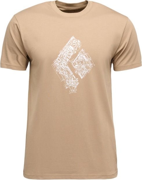 Le t-shirt Black Diamond Engineered Diamond SS Tee Mushroom pour homme, en coton biologique, offre confort et liberté de mouvement pour la grimpe et le quotidien.