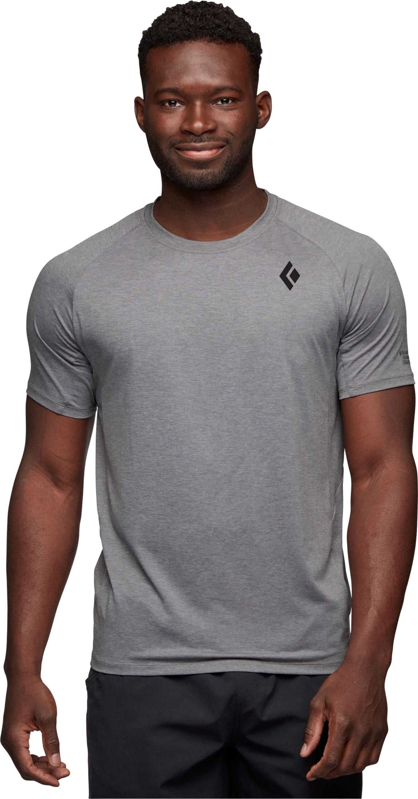 T-shirt technique homme Black Diamond Lightwire SS Tech Tee Steel Grey, stretch et respirant en matière recyclée anti-odeurs, avec goussets sous les bras pour la liberté de mouvement en escalade et randonnée.