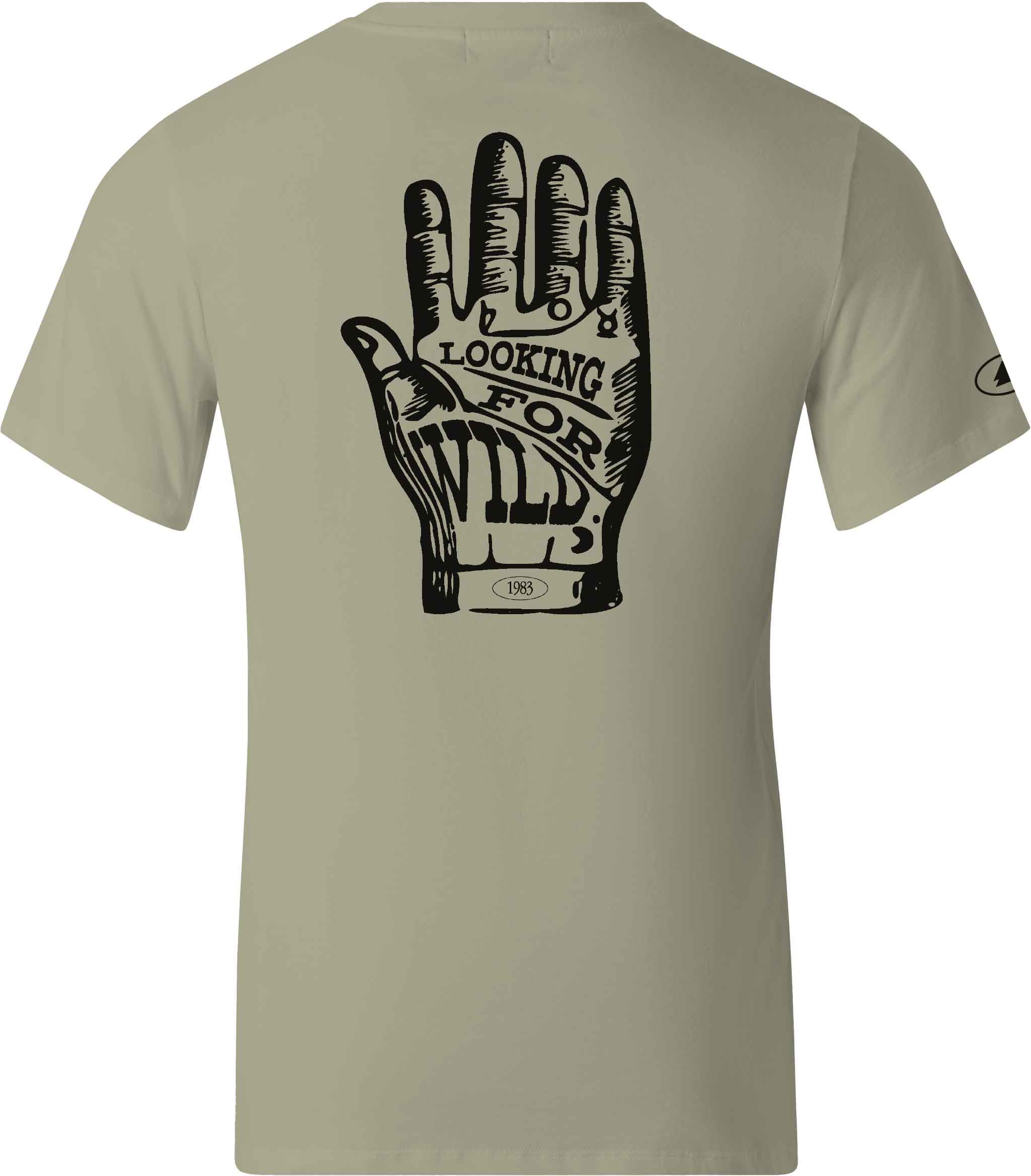 T-shirt Old Hand Alfalfa Looking For Wild homme en coton biologique, respirant et doux pour escalade et training. Coupe adaptée, sérigraphie rétro au dos, confort durable.