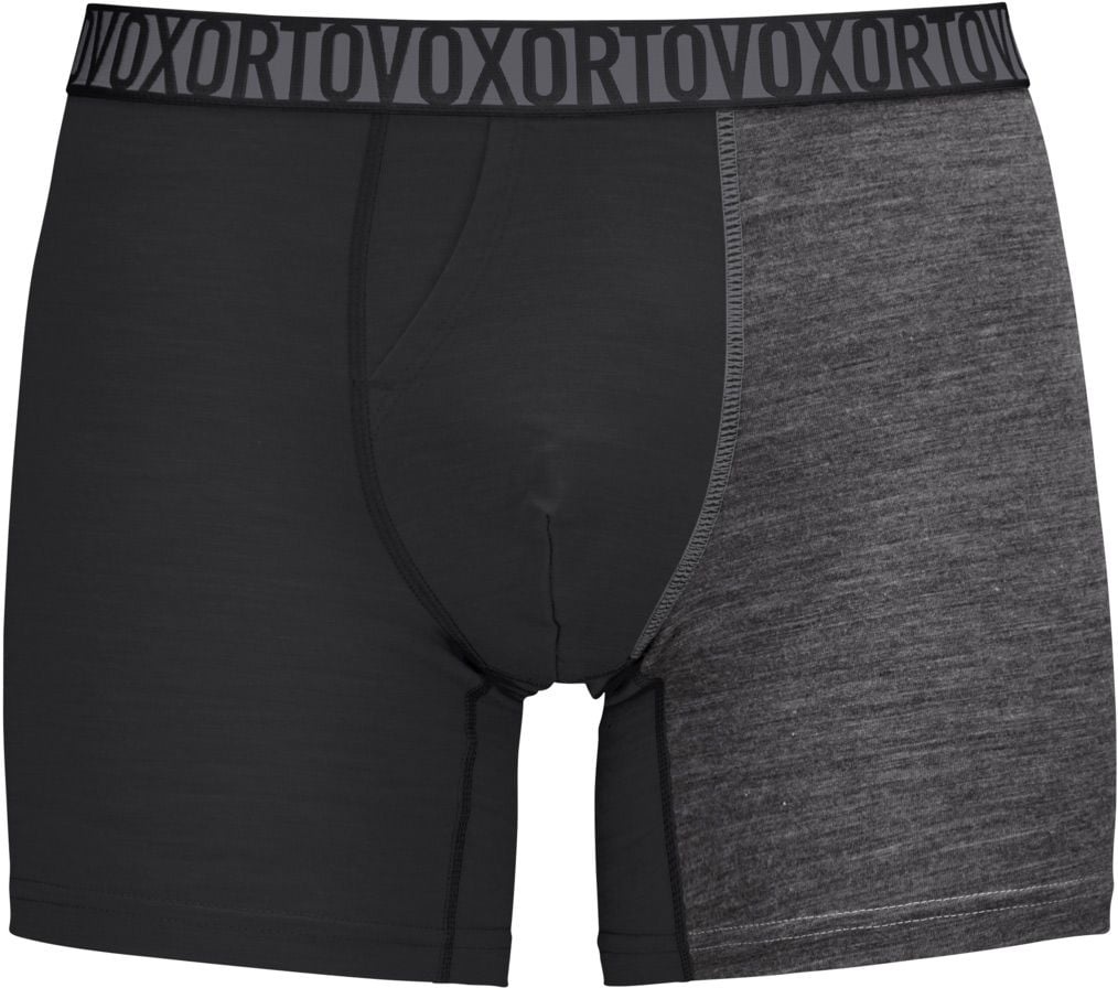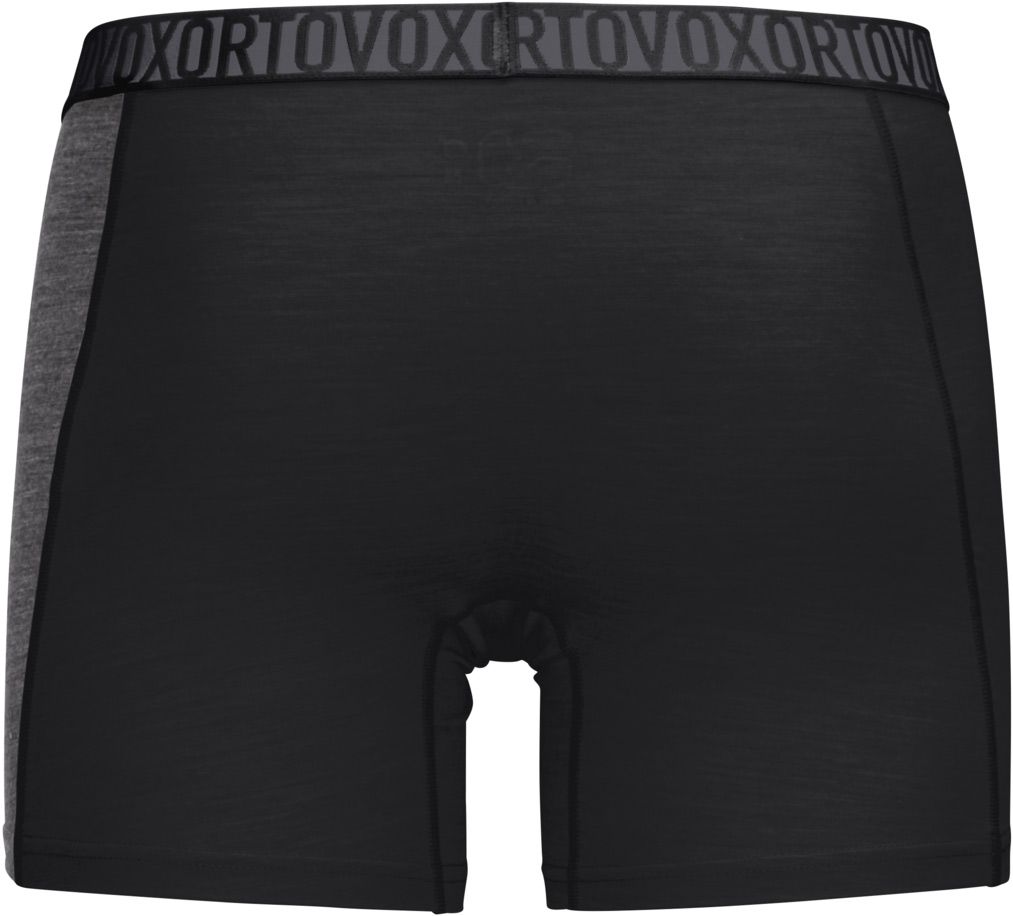 Boxer Ortovox 150 Essential Boxer Briefs Black Raven pour homme, première couche mérinos/Tencel™/fibres synthétiques offrant régulation thermique, évacuation de l’humidité et fraîcheur en randonnée, alpinisme, escalade ou ski de randonnée.