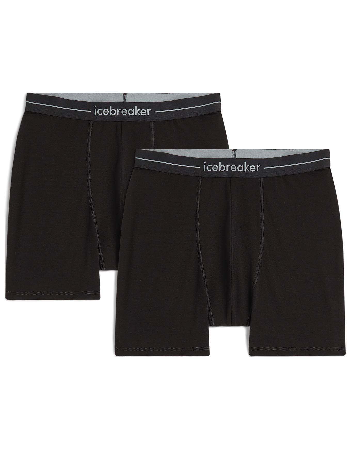 Boxer Icebreaker Merino Anatomica 2-Pack Black, mélange laine mérinos Corespun™ pour confort respirant, coutures plates zéro-frottement et soutien contour.