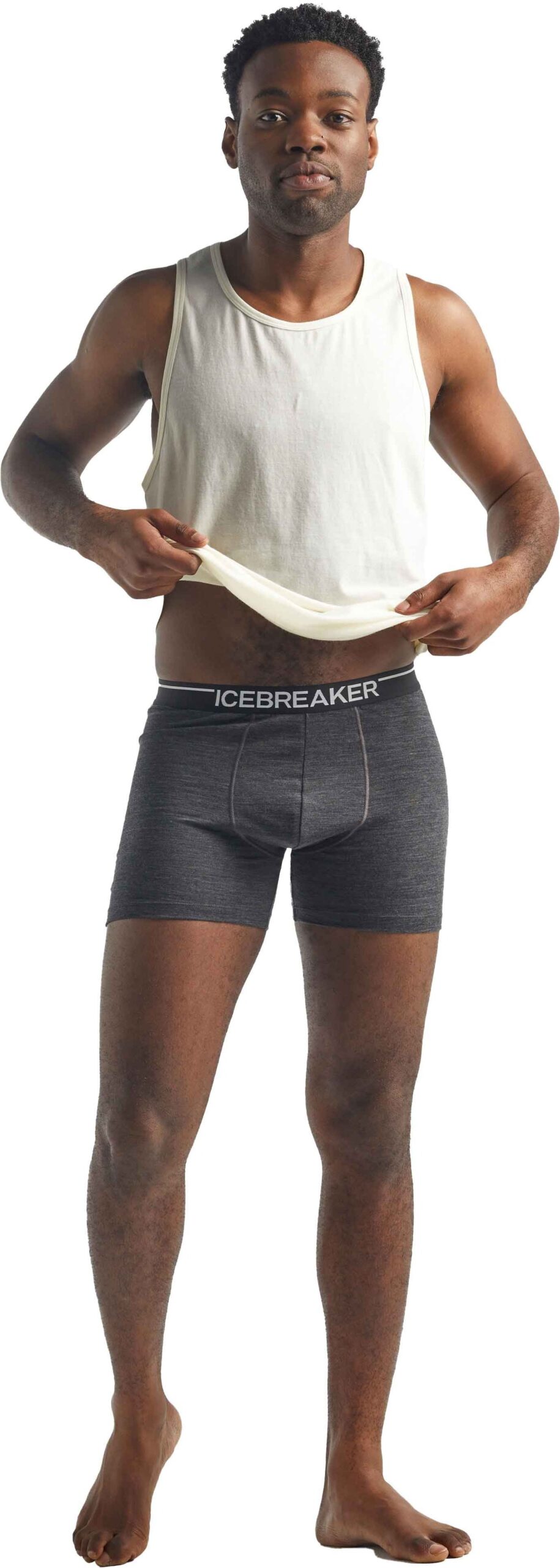 Icebreaker Merino Anatomica Boxers Jet Heather, sous-vêtement technique homme en laine mérinos Corespun™, offre confort, durabilité et soutien sans frottement pour vos activités engagées.
