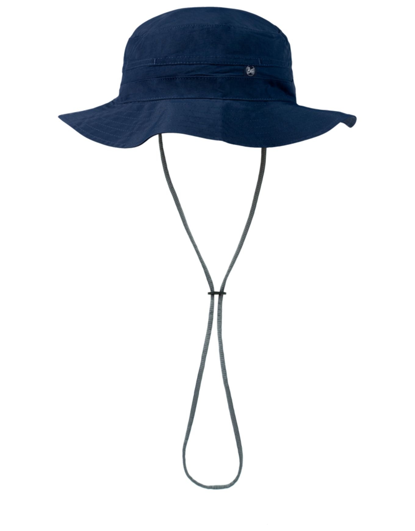 Chapeau Explore Booney Solid Navy unisexe de Buff, conçu pour les journées outdoor. Respirant avec ventilations latérales, bandeau absorbant et protection UPF50.