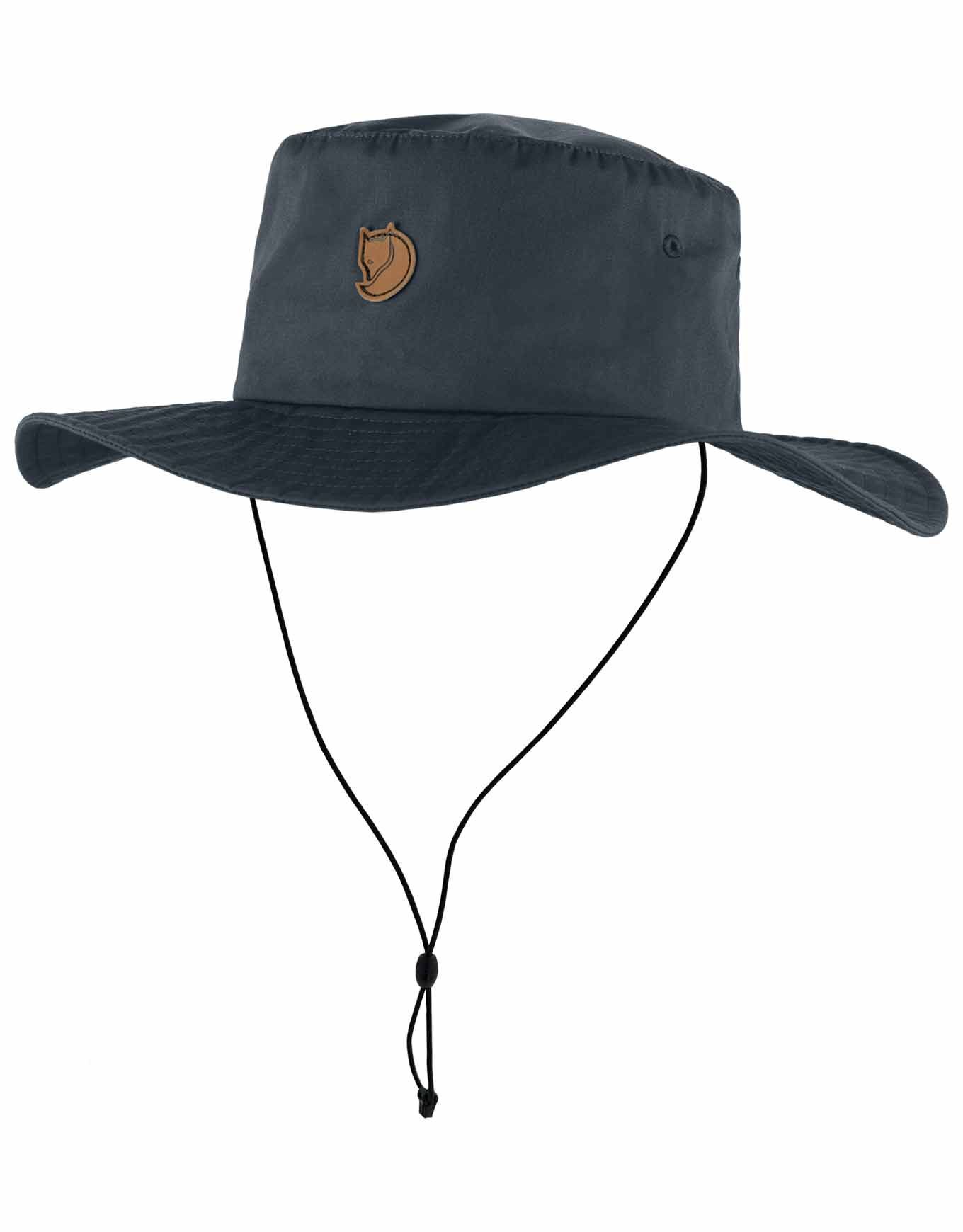 Chapeau Fjällräven Hatfield Dark Navy unisexe à larges bords, en G-1000® Eco résistant vent et eau, séchage rapide, cordon réglable sous menton pour voyage et randonnée.