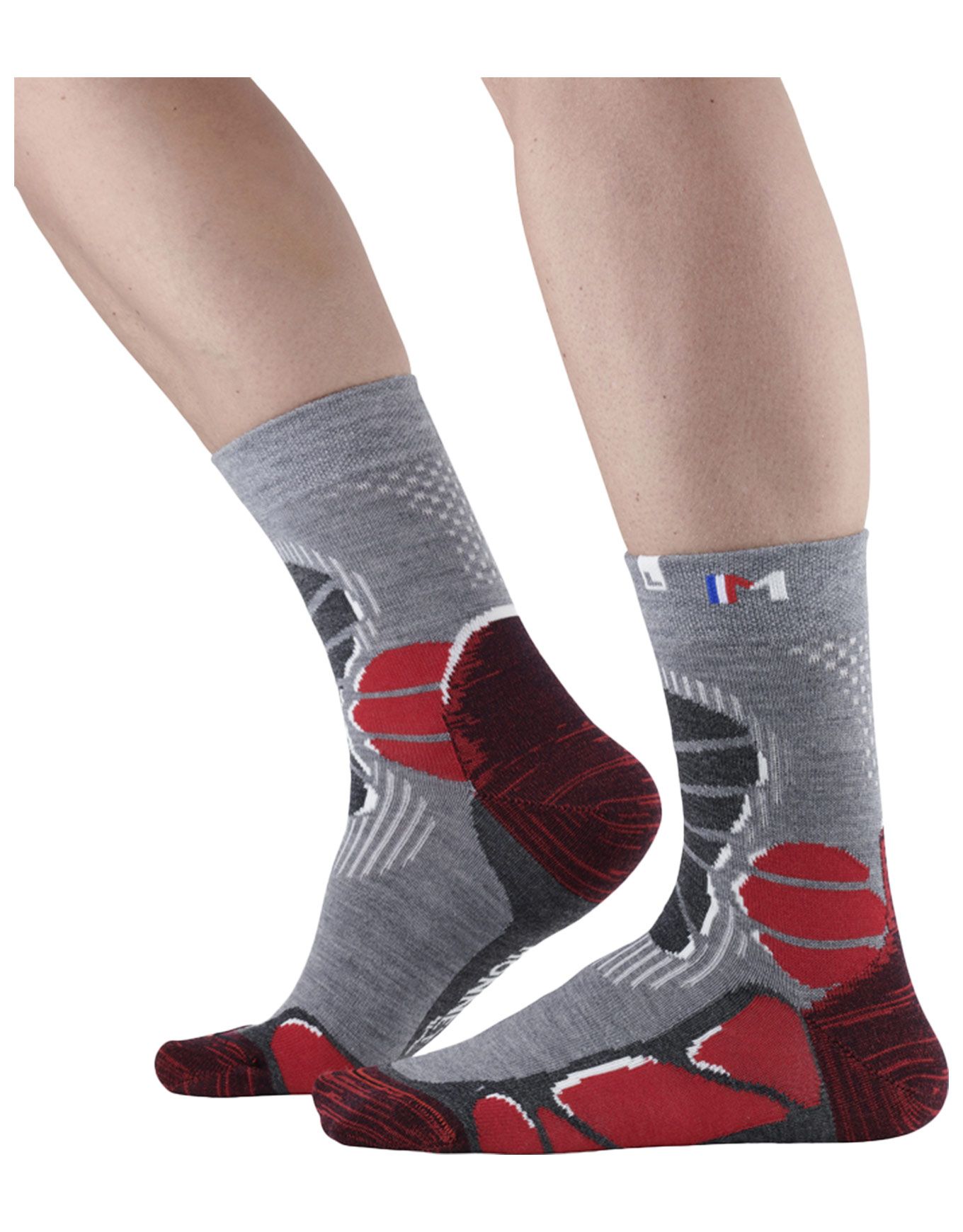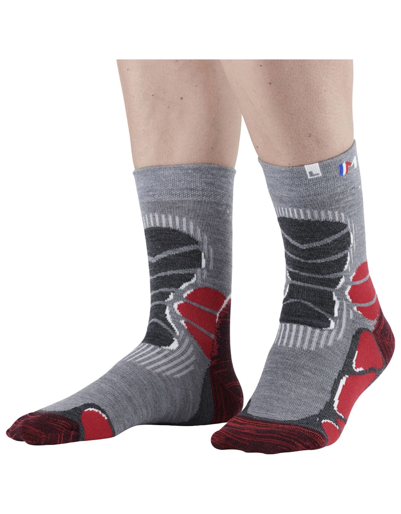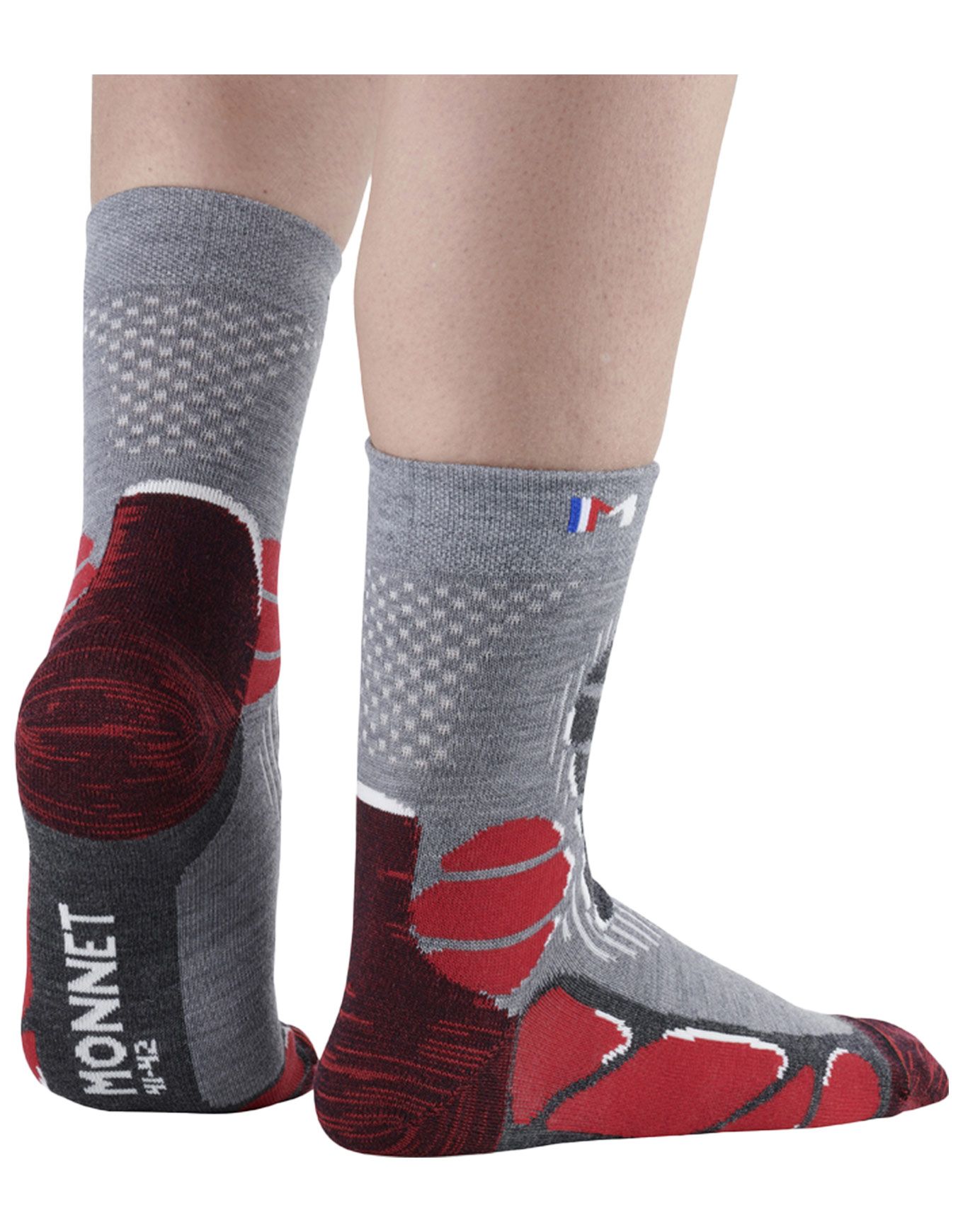 Pour les passionnés de trails et d’expéditions en sentiers escarpés, le modèle mixte Mid Extra Light Rouge de Monnet constitue un choix idéal. L’association de laine mérinos et de fibres techniques confère à ces chaussettes une respirabilité remarquable, une sensation de douceur sous le pied ainsi qu’une propriété antibactérienne. Grâce à leur tricotage fin, une aération maximale est garantie pendant l’effort, tandis que les zones stratégiques renforcées au niveau de l’avant-pied et du talon, accompagnées de protections dédiées, limitent les irritations et assurent un confort prolongé. Spécifiquement pensée pour les longues distances et les dénivelés importants, cette chaussette mi-montante ravira les aventuriers en quête de performance. Explorer les rubriques liées Chaussettes de randonnée Vêtements outdoor homme Vêtements randonnée
