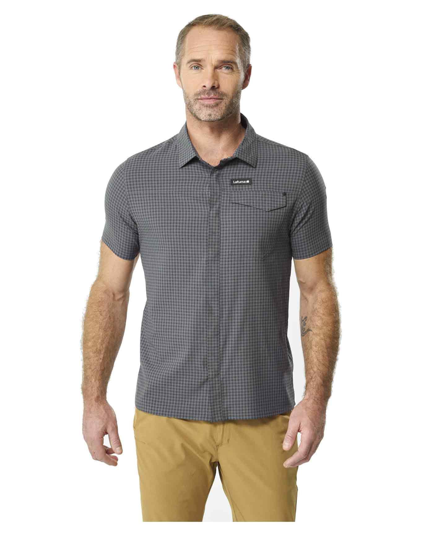 Chemise Lafuma Skim Shirt SS Carbon Grey pour homme, stretch respirante et séchage rapide, idéale randonnée et voyage.