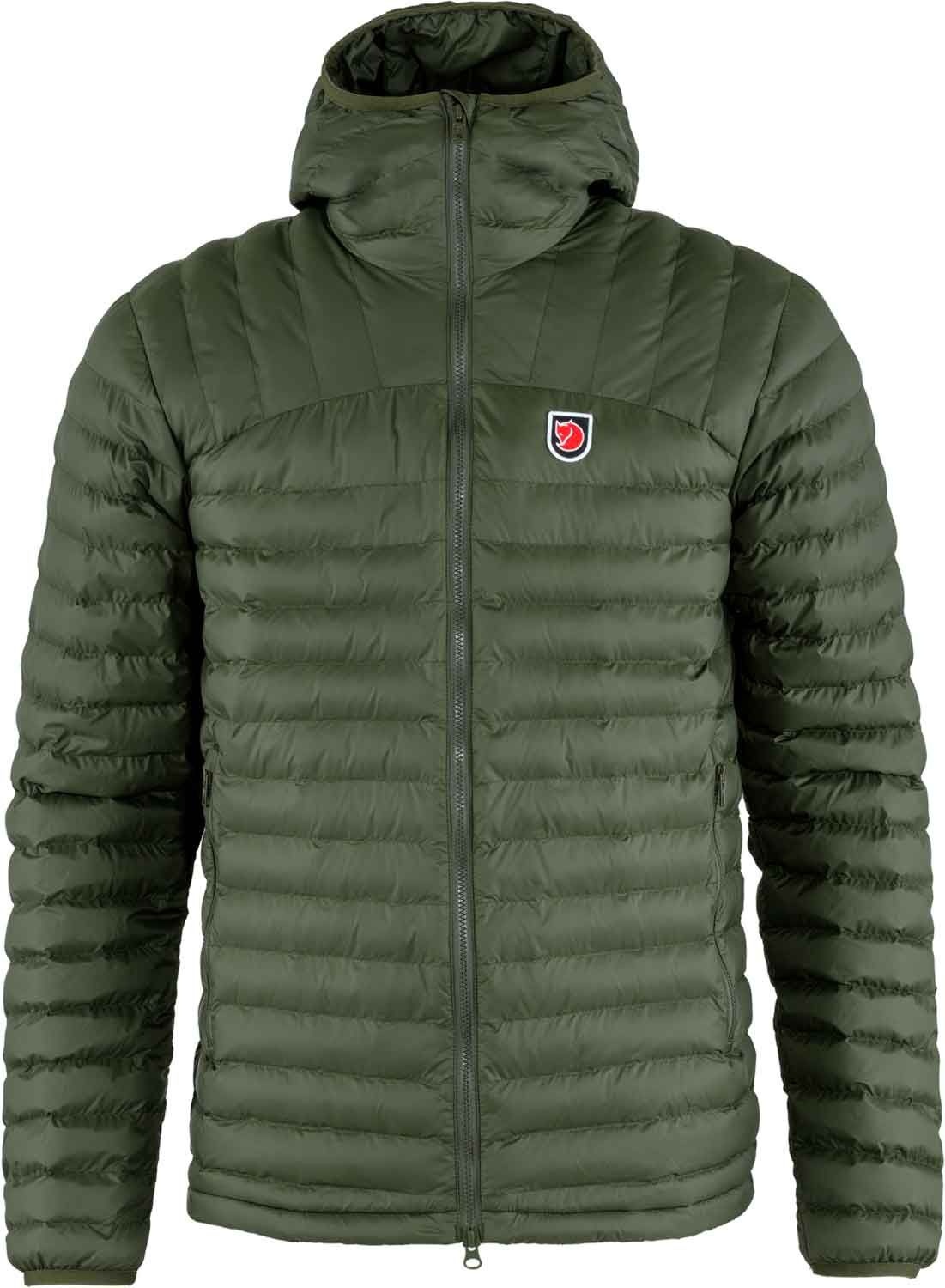 Doudoune Expedition Lätt Hoodie Deep Forest Fjällräven homme, légère et compressible, garnie de polyester recyclé performant pour la chaleur sous coquante hivernale.