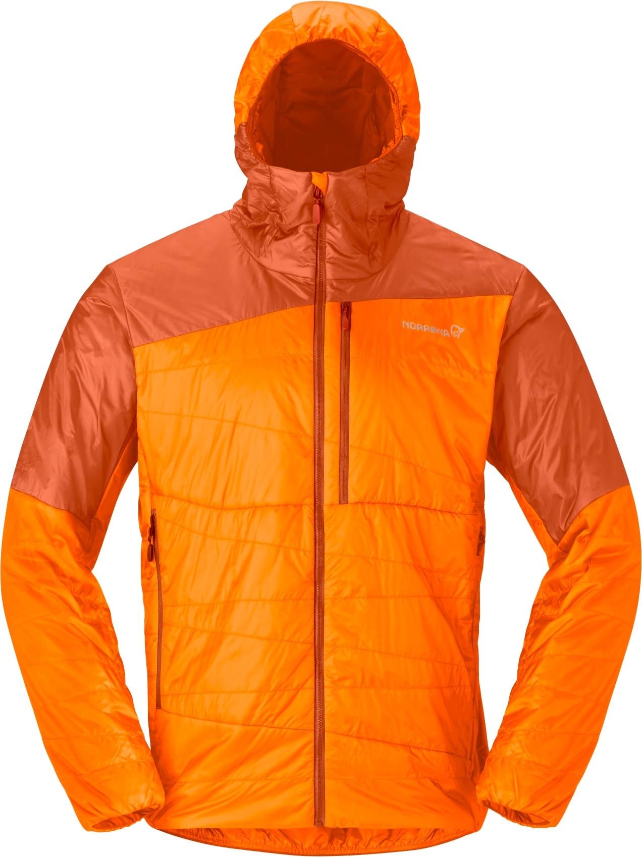 La doudoune Norrona Falketind Thermo40 Zip Hood Exuberance pour homme combine tissu aeroDownproof™ et isolation synthétique thermo40 pour un rapport poids/chaleur optimal en randonnée.