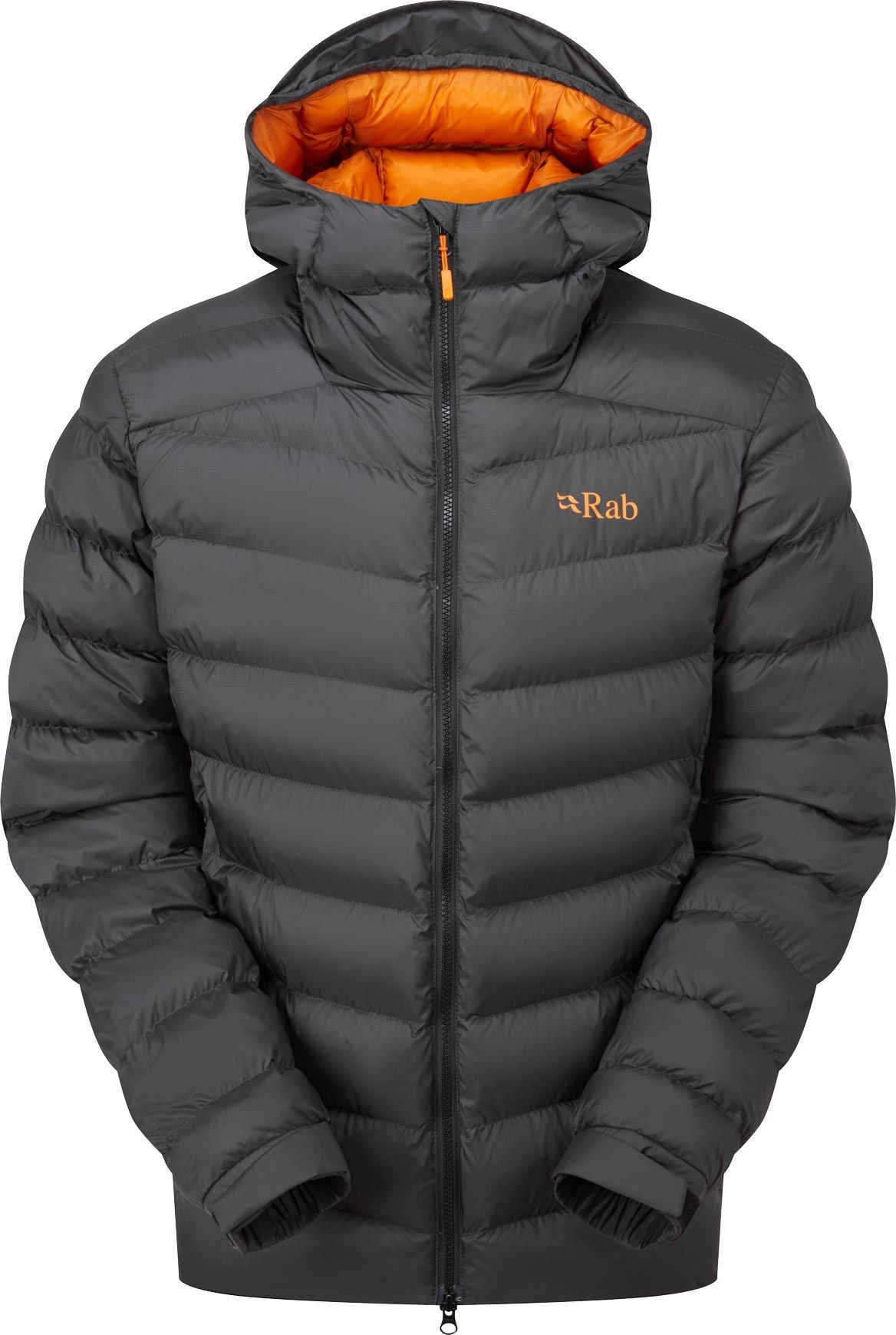Doudoune Rab Nebula Pro Jacket Anthracite homme, coque Pertex® Quantum Pro, isolation PrimaLoft® Silver Luxe™ et duvet synthétique, capuche casque, zip YKK® bidirectionnel.