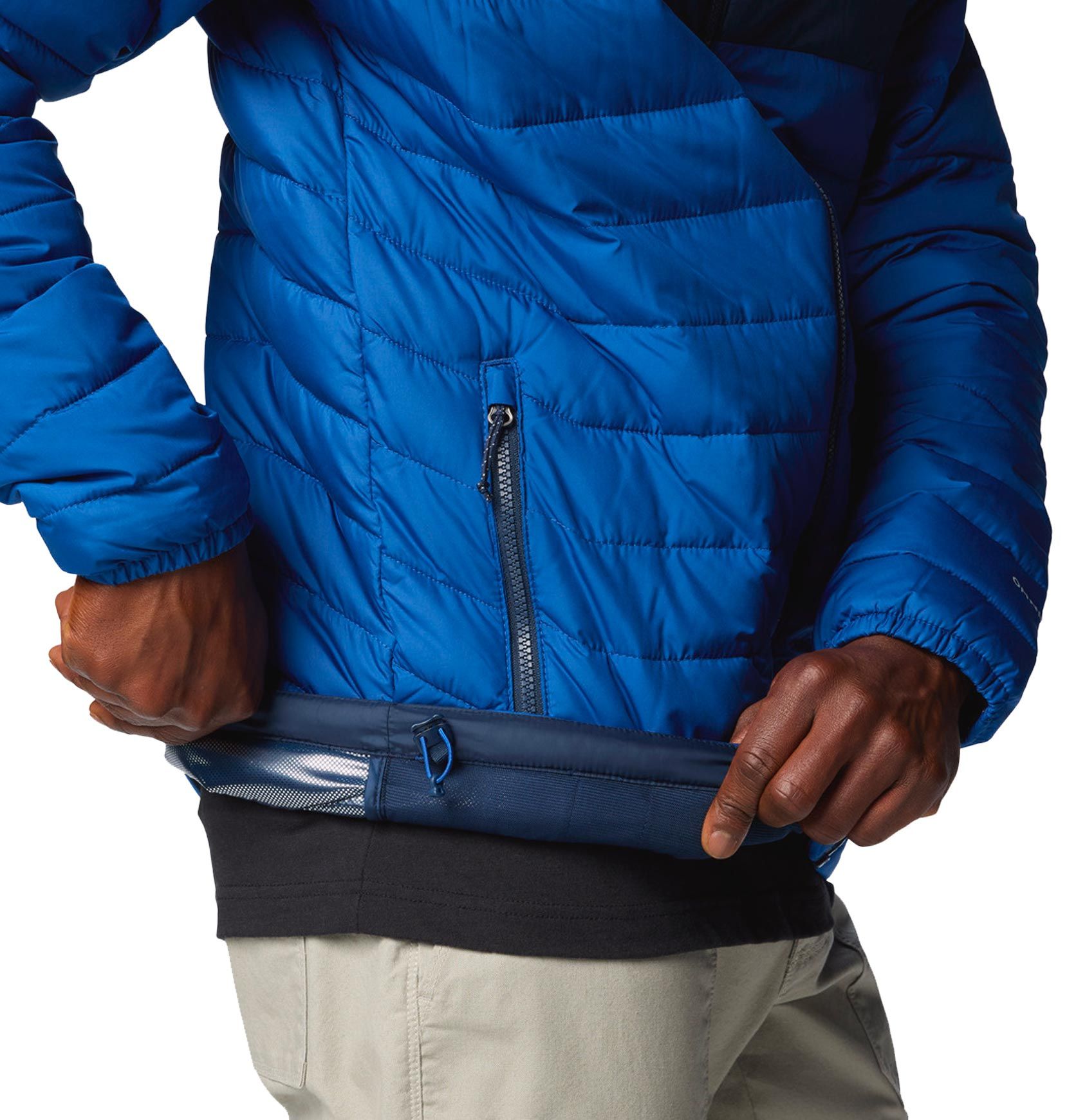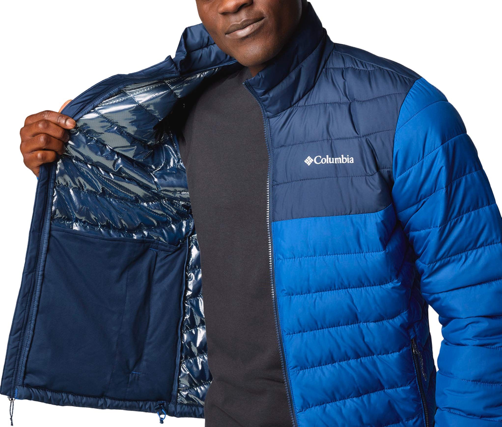 Doudoune Columbia Powder Lite™ Mountain Blue/Collegiate Navy pour homme, déperlante, isolante Thermarator™ et doublure thermo-réfléchissante pour la chaleur légère en ville ou à la montagne.
