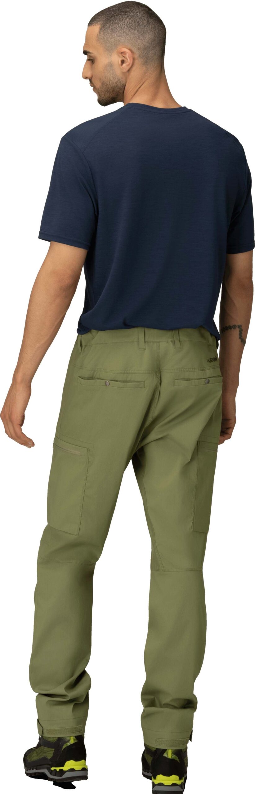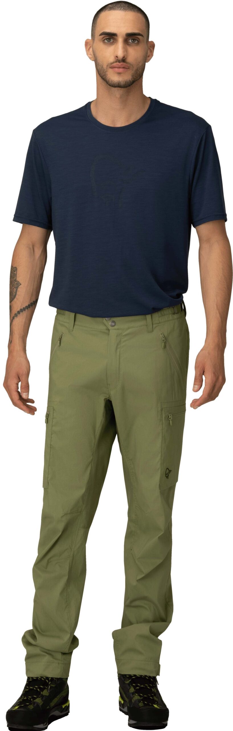 Pantalon Norrona Femund Light Cotton pour homme, en loden green, allie coton organique et fibres synthétiques pour résister au vent, respirer et sécher vite. Sa matière stretch et ses genoux articulés garantissent liberté de mouvement en randonnée.