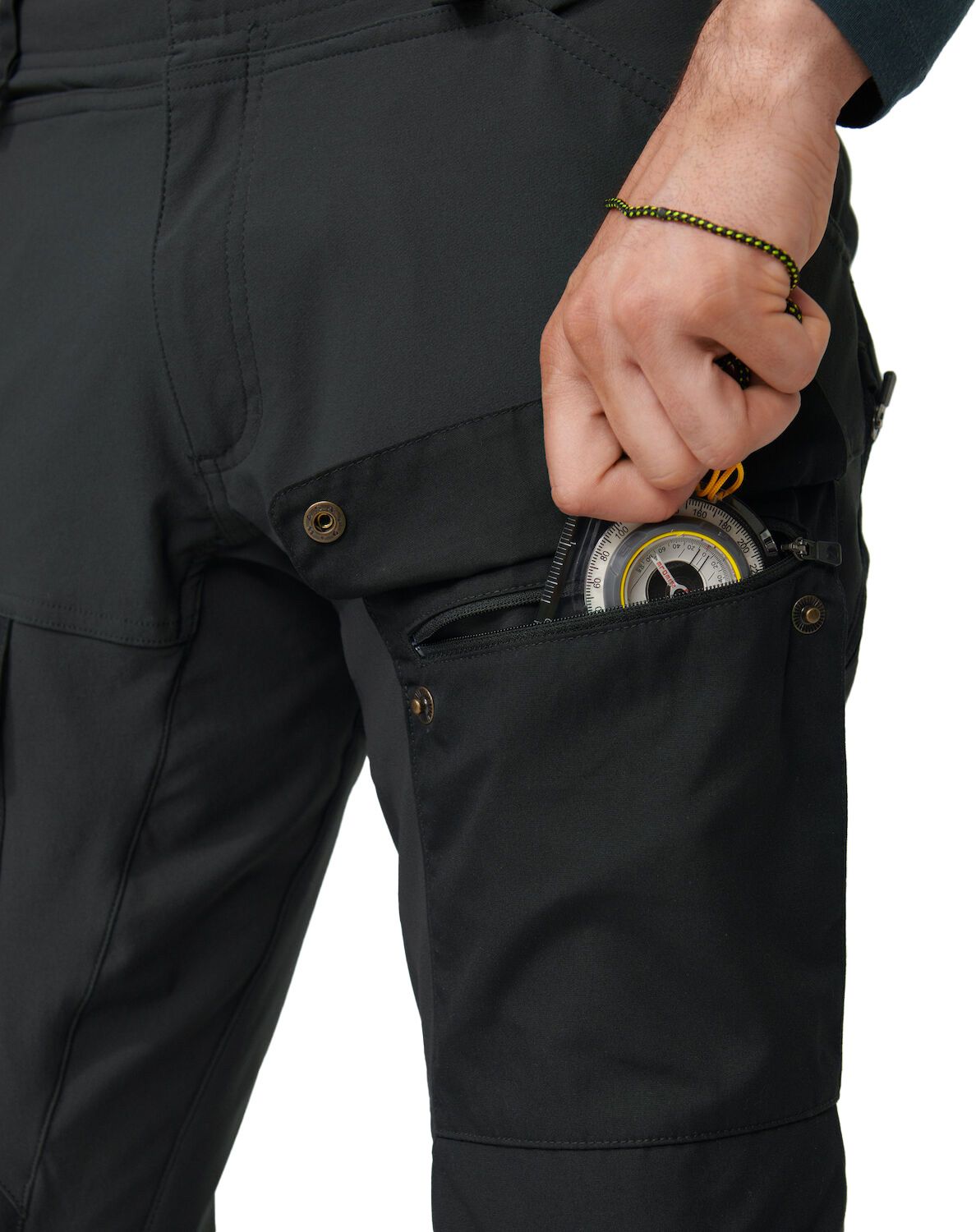 Spécifiquement pensé pour les journées en altitude, le pantalon Keb Regular Black pour homme se distingue par sa robustesse et son extensibilité. Ce modèle technique allie un tissu G-1000® Eco à une matière extensible, offrant ainsi protection et liberté de mouvement, tout en résistant à l’eau et au vent. Les zones exposées – avant des jambes, genoux et assise – bénéficient d’empiècements en G-1000® Eco. La conception particulière de l’entrejambe limite les frottements.