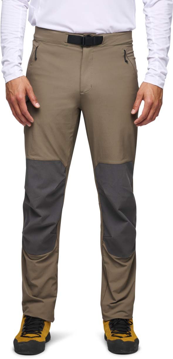Pantalon Alpine Hybrid Pants Walnut Anthracite Black Diamond pour homme, extensible 4 sens avec traitement GTT Empel™ déperlant sans PFAS, zones genoux/assise renforcées, genoux préformés, ceinture réglable, 3 poches zippées.