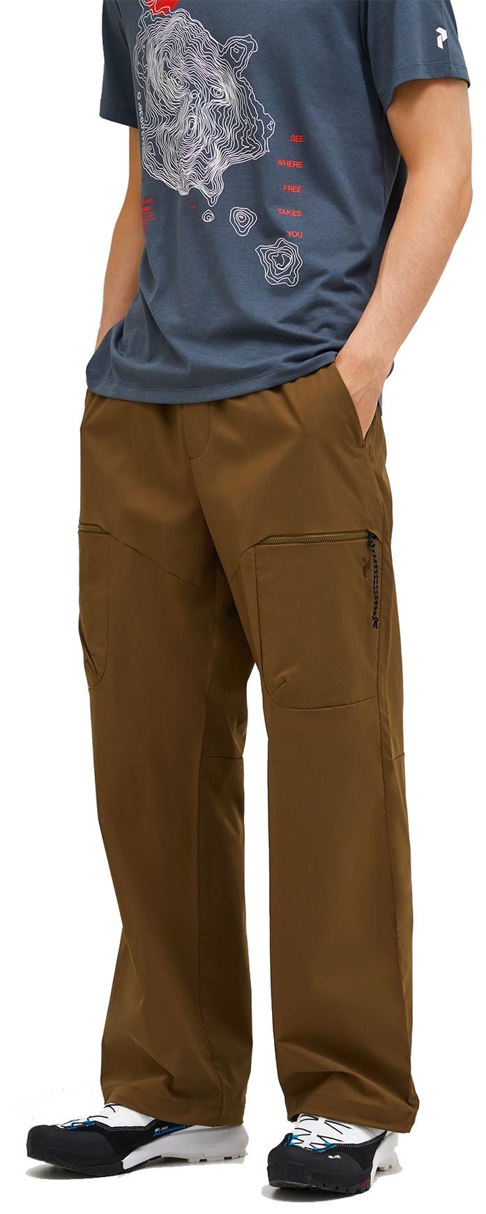Peak Performance Outdoor Cargo Pants Meadow Moss, pantalon de randonnée homme en tissu léger stretch déperlant, taille élastique réglable et deux poches zippées sur les jambes.