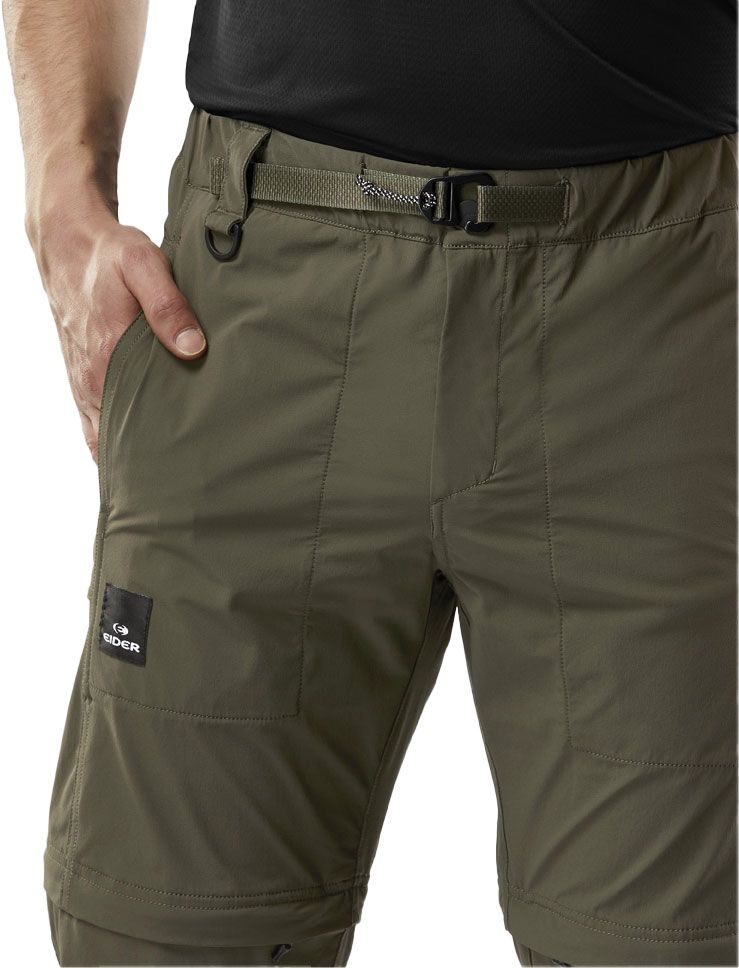 Pantalon zip-off EIDER Rove Khaki pour homme, en tissu léger stretch séchage rapide, passe du pantalon au short en un instant pour la rando et le voyage.