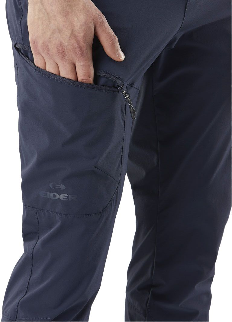 Pantalon technique EIDER Spin Stretch Pant Dark Navy pour homme, stretch à séchage rapide, déperlant durable, genoux préformés et passants ceinture pour escalade et randonnée.