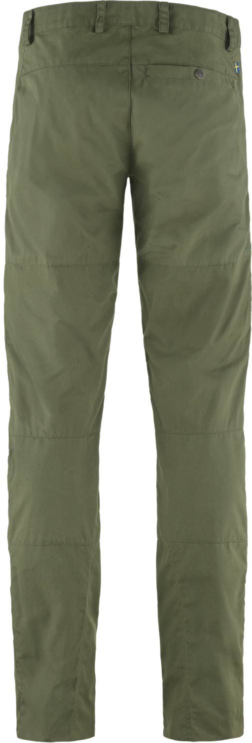 Pantalon Fjällräven Nils Trousers Laurel Green homme en G-1000® Silent Eco doux, renforts G-1000® Eco genoux et siège, résistant et confortable pour vie quotidienne, randonnée ou cueillette.