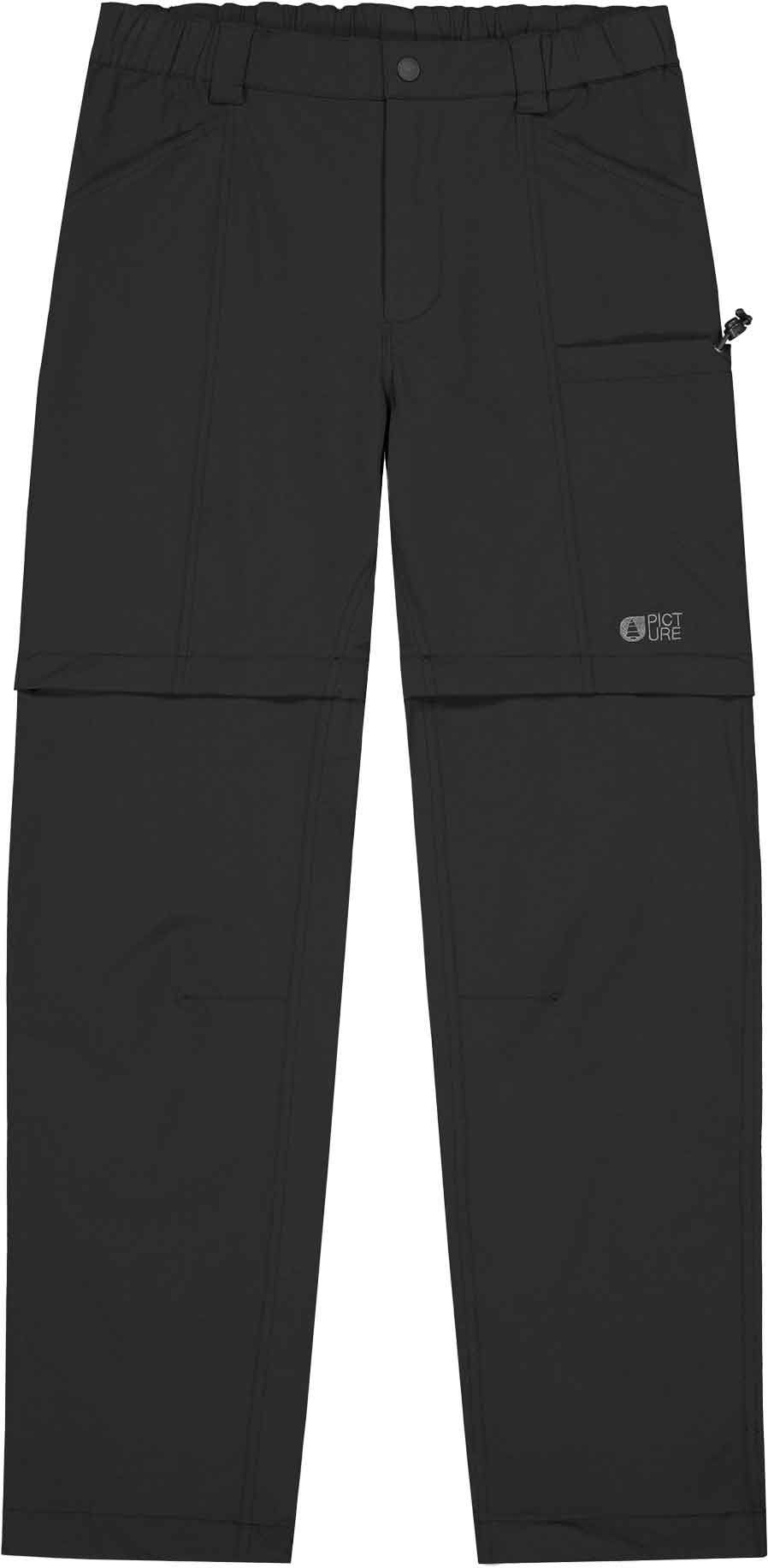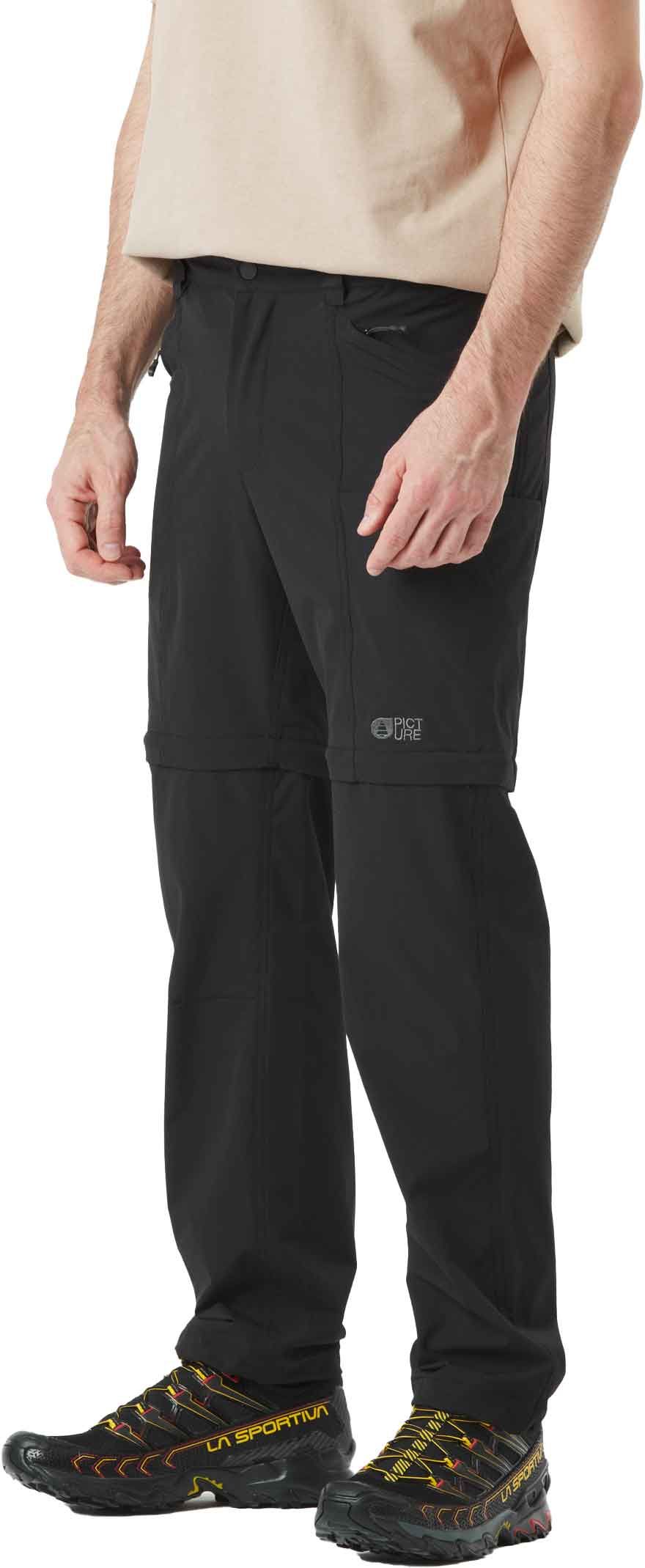 Le pantalon Outif 2in1 Black Picture pour homme se transforme en short via fermetures éclair intégrées, offrant liberté de mouvement, protection déperlante et rangement pratique des bas de jambe.