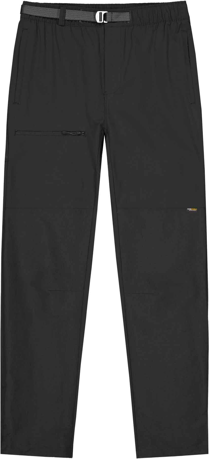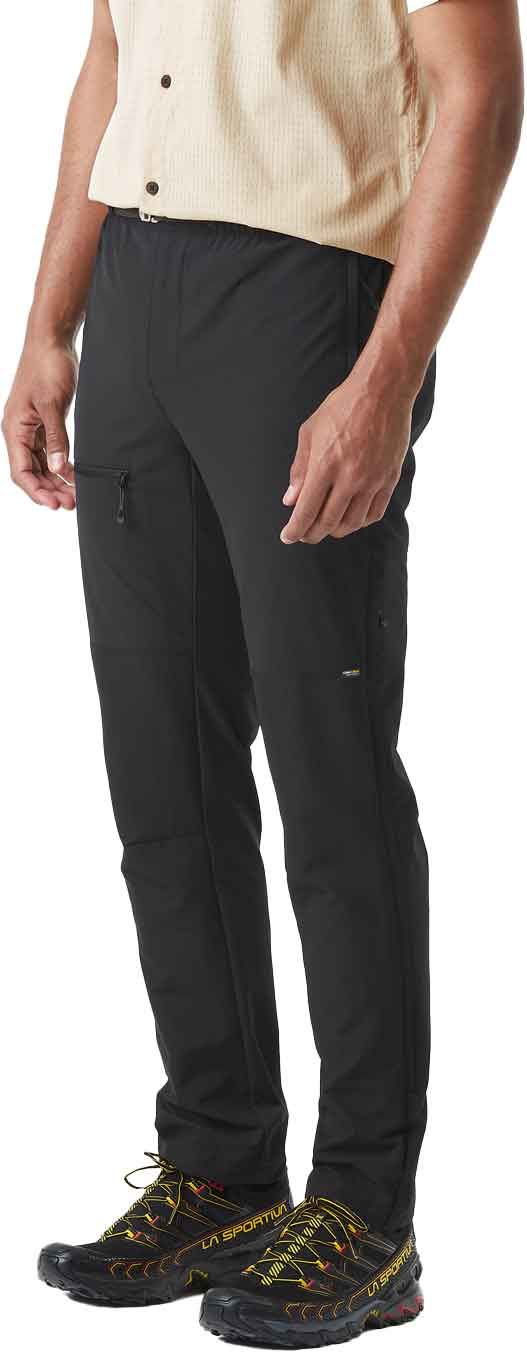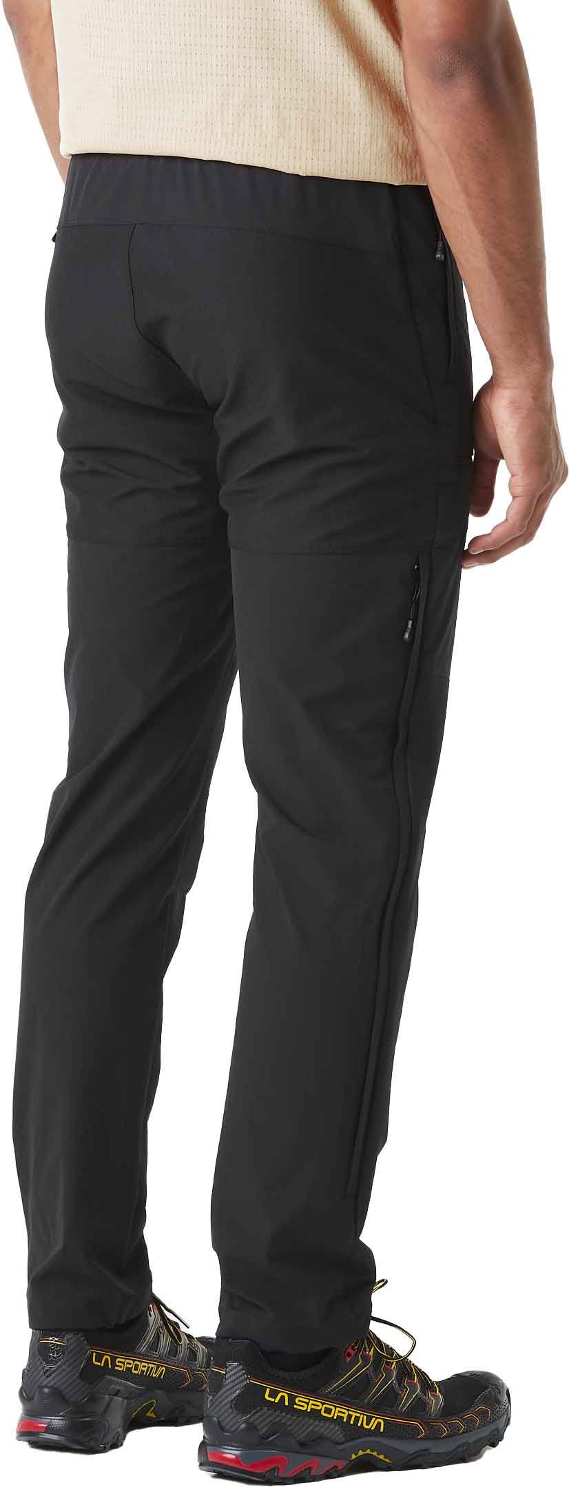 Le pantalon technique Shooner Black pour homme de Picture Organic Clothing allie nylon recyclé extensible et technologie Dry Now pour la randonnée : liberté de mouvement, séchage rapide, taille élastique et poches latérales zippées.