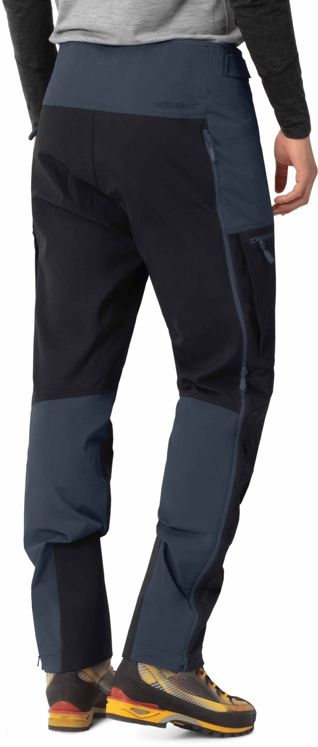 Pantalon softshell Norrona Trollveggen Flex1 Pants homme : tissu 199 g/m² coupe-vent, respirant et stretch, genoux articulés, réglage Custom-fit™, poches étanches, ventilation latérale, compatible alpinisme et randonnée 4 saisons.