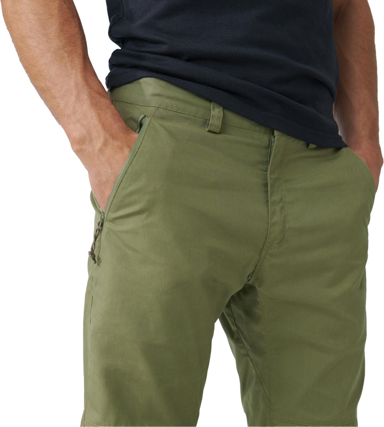 Fjällräven Vardag Trousers Green, pantalon homme en G-1000® Eco Stretch résistant à l’eau et au vent, offre liberté de mouvement et bas de jambes ajustables pour la randonnée ou la ville.