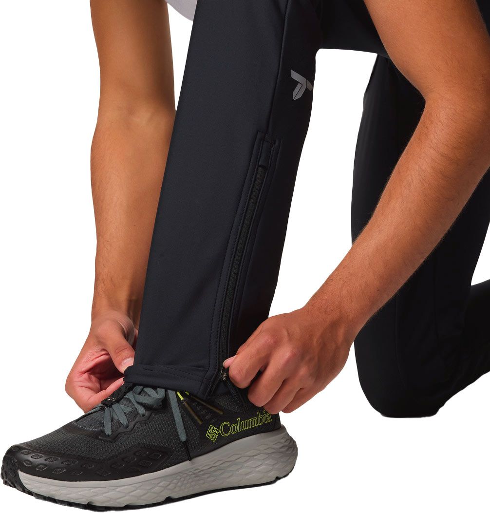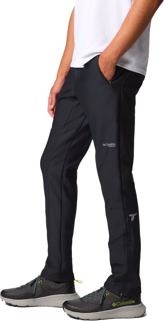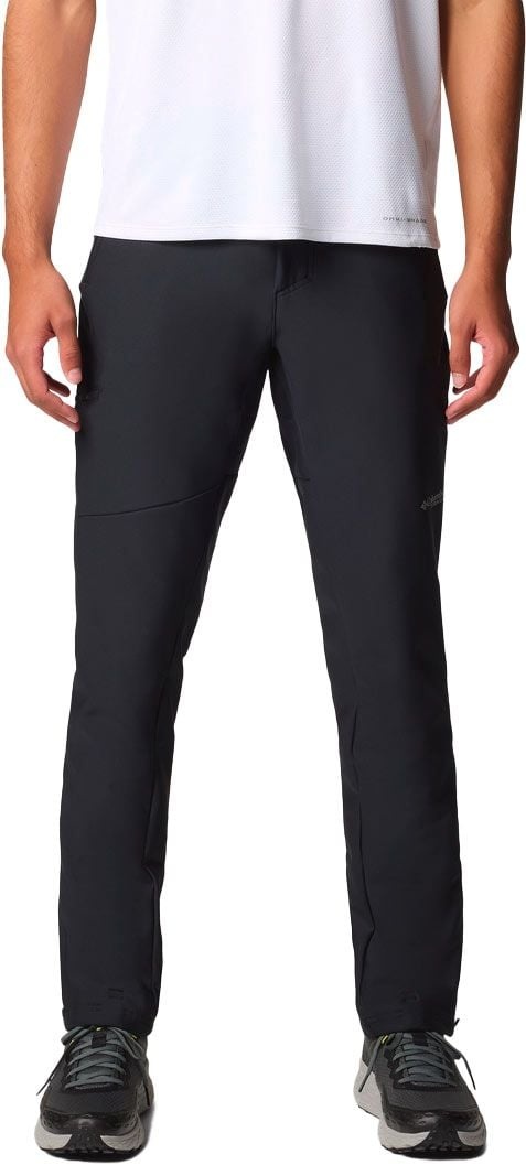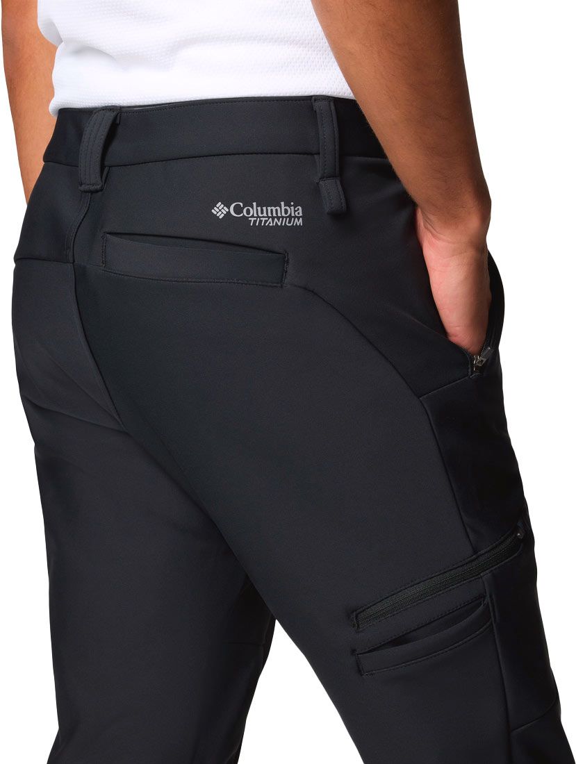 Pantalon Columbia Vast Canyon Softshell Pant noir homme, coupe aventure avec traitement déperlant Omni-Shield™, stretch polyamide élasthanne, taille semi-élastiquée, poches zippées et bas de jambe zippés pour enfilage rapide sur chaussures.