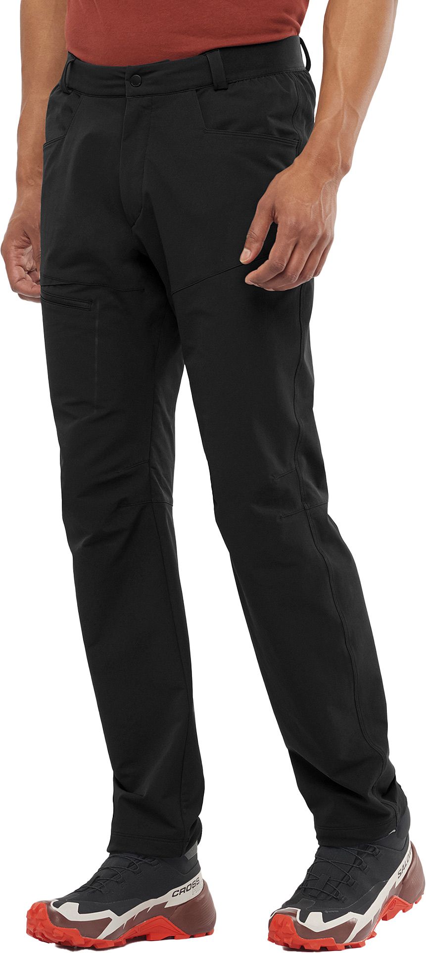 Salomon Wayfarer Warm Pants Deep Black est un pantalon softshell pour homme, coupe-vent et déperlant sans PFC, doté d’un intérieur brossé pour plus de chaleur en randonnée hivernale.