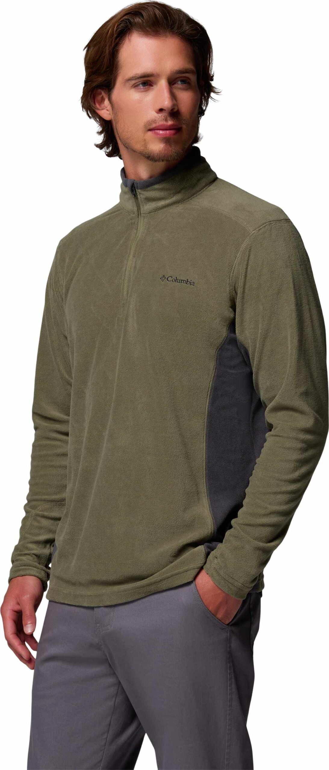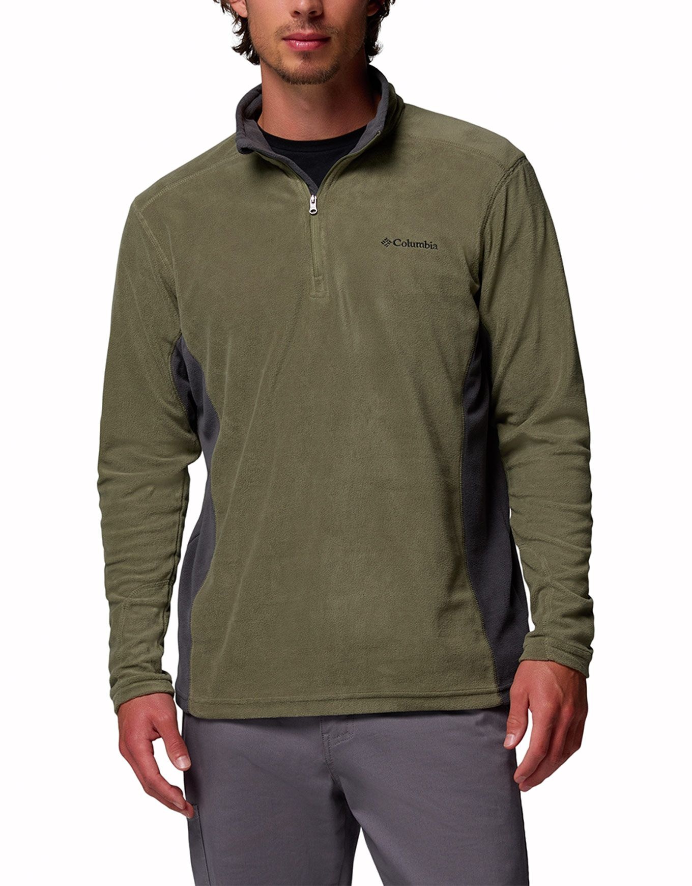 Columbia Klamath Range II Half Zip Stone Green Shark, polaire ultra-légère homme, s’impose comme couche intermédiaire chaude pour l’hiver outdoor : col protecteur, isolation thermique efficace, liberté de mouvement garantie.