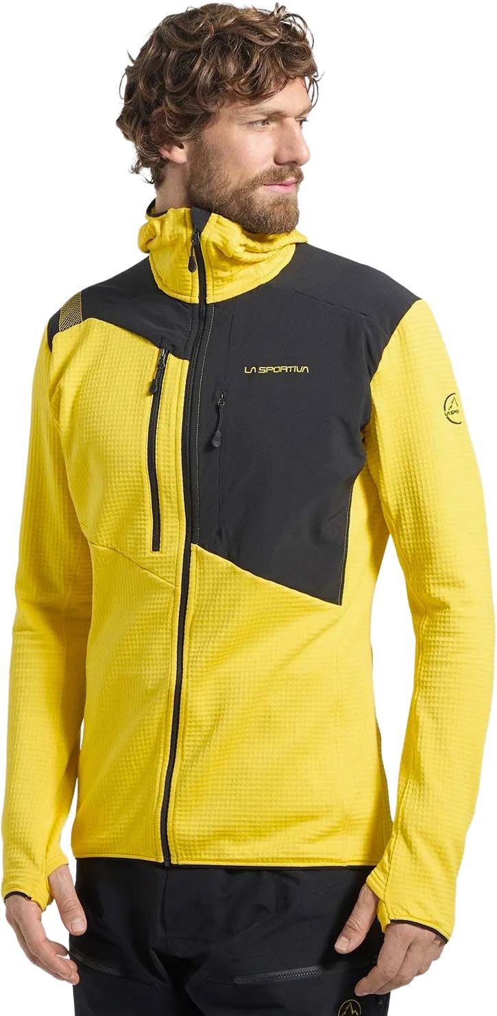 La Sportiva Lucendro Thermal Hoodie Yellow/Black est une polaire technique homme en Polartec® Power Grid® respirant et léger, offrant chaleur, évacuation de l’humidité et anti-odeurs. Capuche ajustée, empiècements renforcés, passe-pouces et deux poches poitrine pour l’alpinisme.