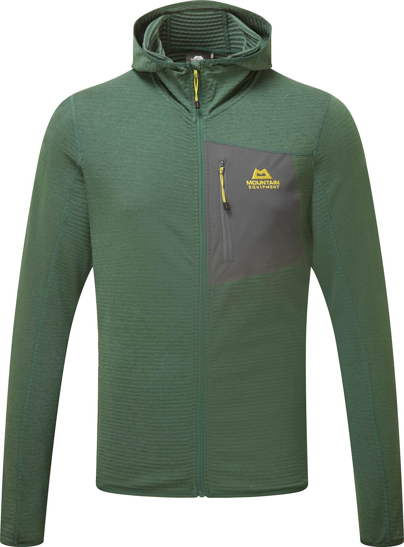 Mountain Equipment Lumiko Hooded Jacket Fern/Ombre : polaire stretch homme légère en matière recyclée, chaude, respirante et séchage rapide pour randonnée et ski de randonnée.