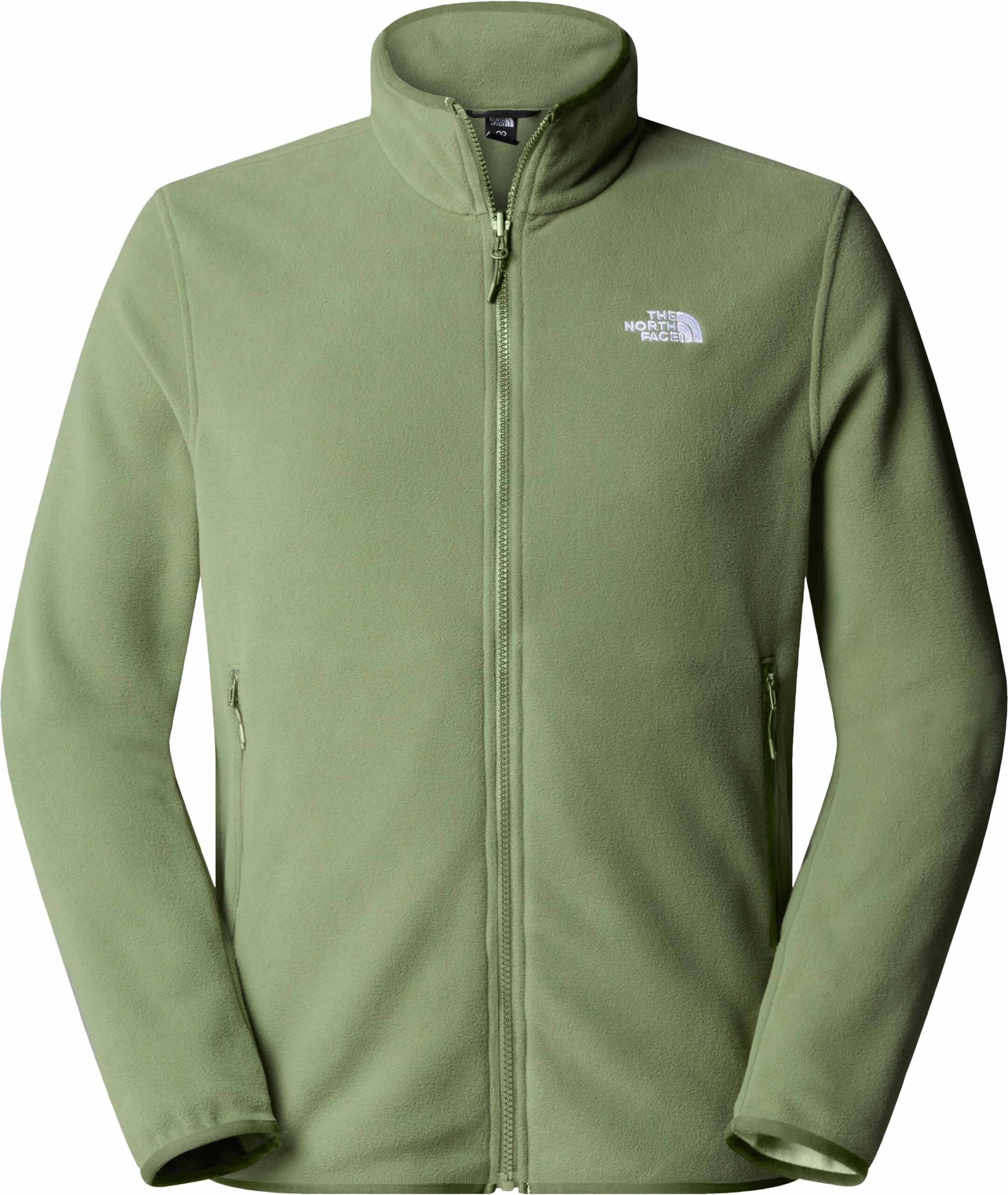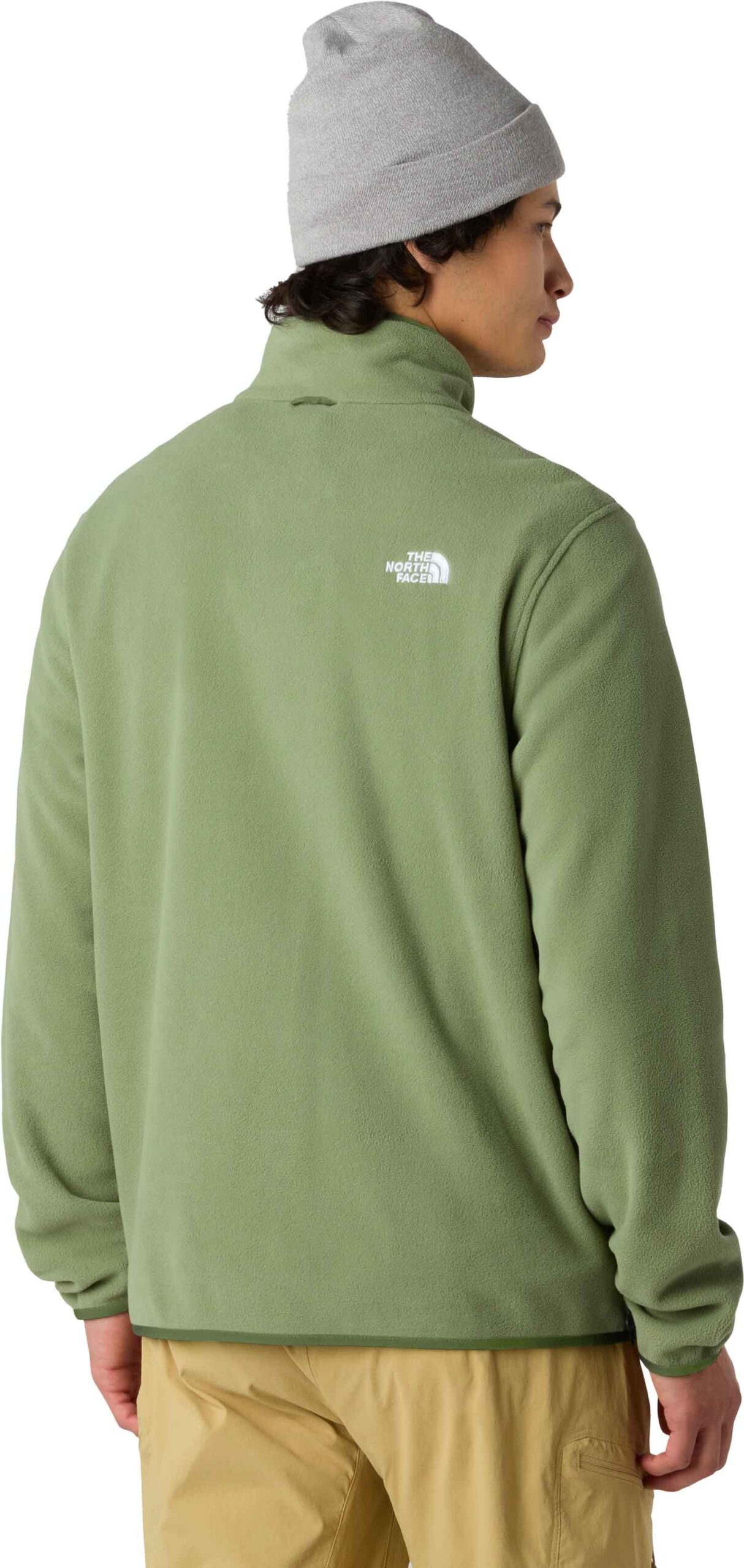 The North Face Glacier Fleece Jacket Bark Mist pour homme, polaire en micro-polaire recyclée, allie chaleur, légèreté et respirabilité avec col montant et deux poches zippées.