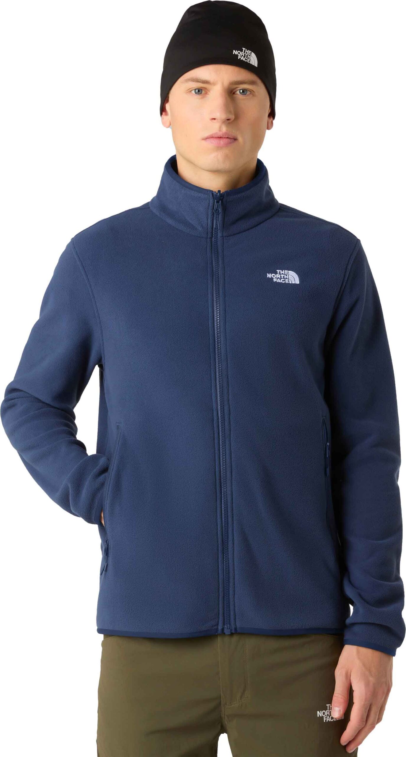 La polaire The North Face Glacier Fleece Jacket Summit Navy homme, en micro-polaire recyclée, allie chaleur légère, respirabilité et col montant avec deux poches zippées.