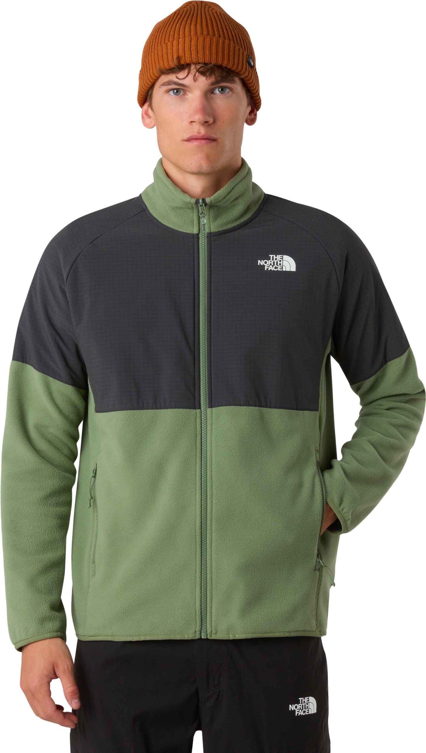 The North Face Glacier Heavyweight FZ Jkt Bark Mist Asphalt Grey est une veste polaire homme en micropolaire chaude et respirante, avec inserts extensibles aux épaules et poitrine, deux poches zippées, poignets et ourlets élastiqués.