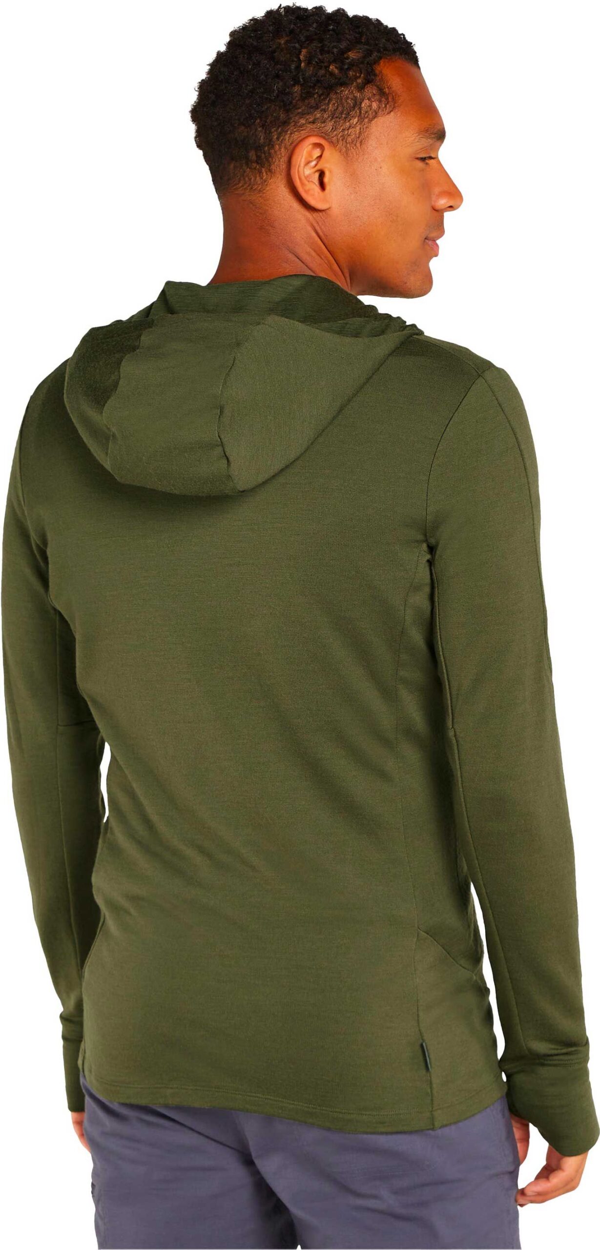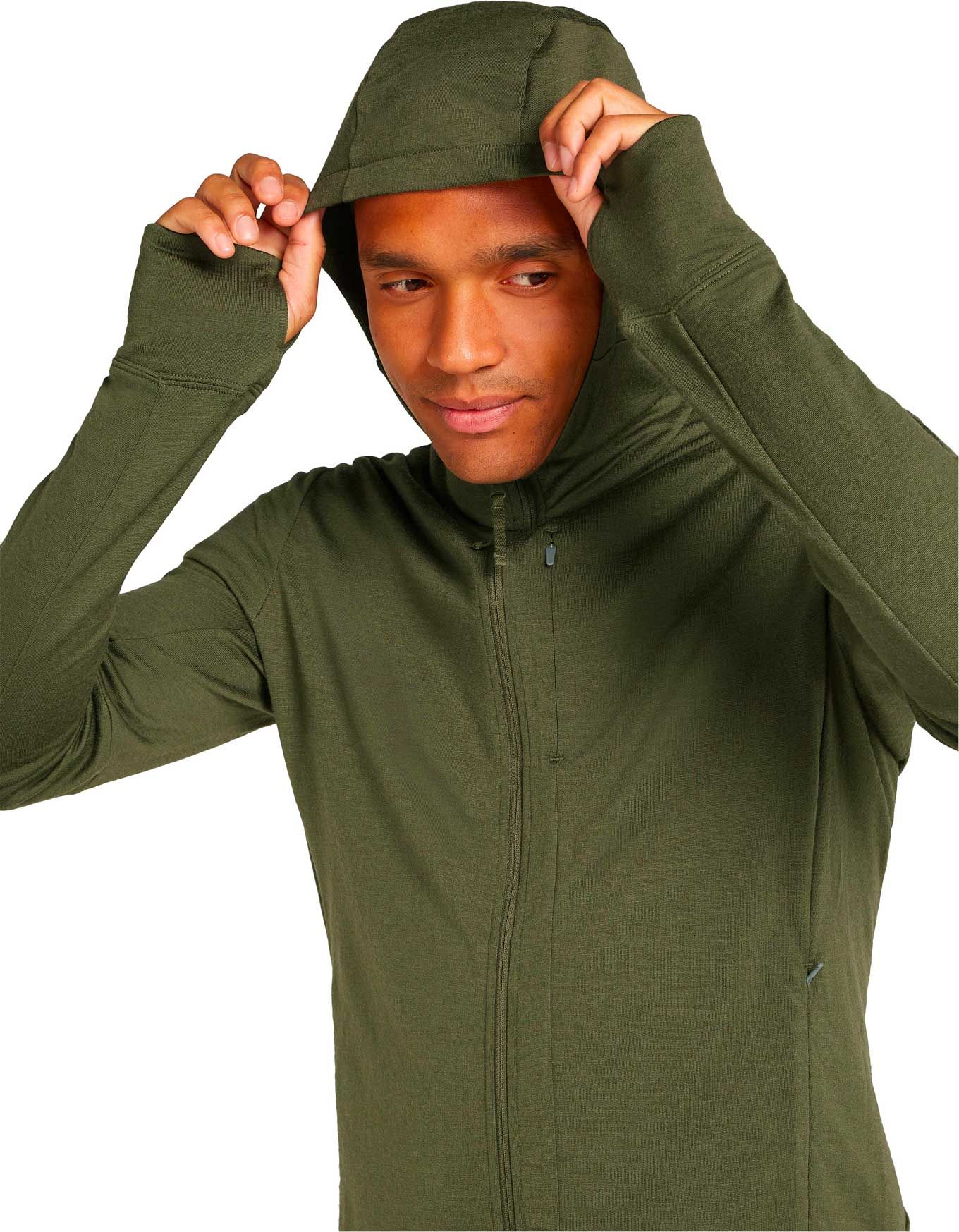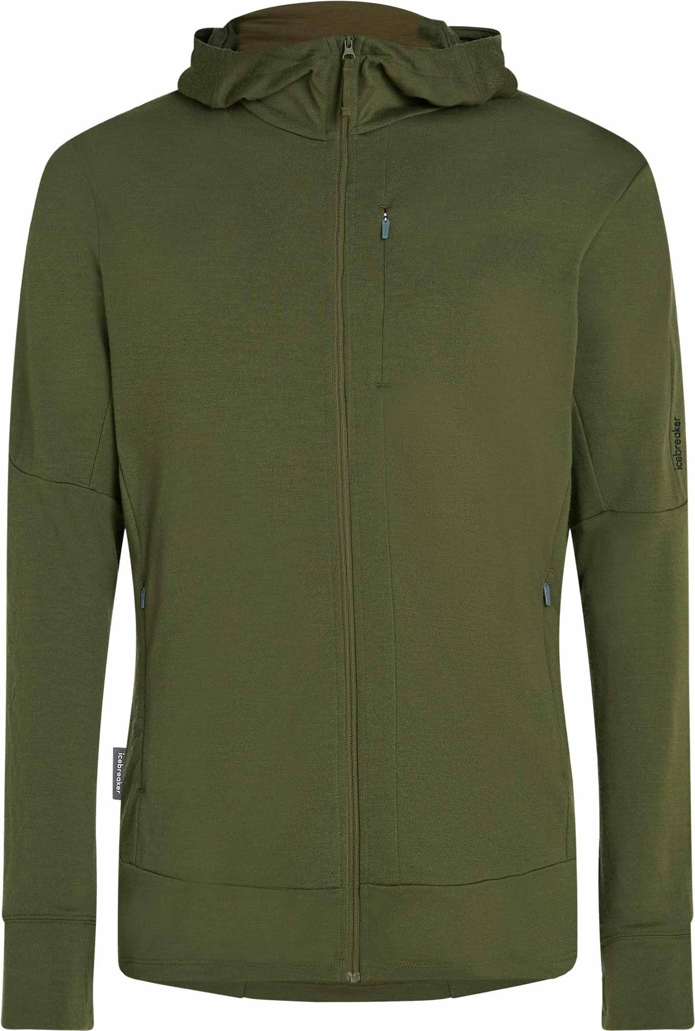 Polartec Icebreaker Merino 260 Quantum IV LS Zip Hoodie homme en laine mérinos thermorégulante, anti-odeurs, capuche ajustée, fermeture bidirectionnelle, passe-pouces et panneaux sous-bras pour liberté de mouvement.