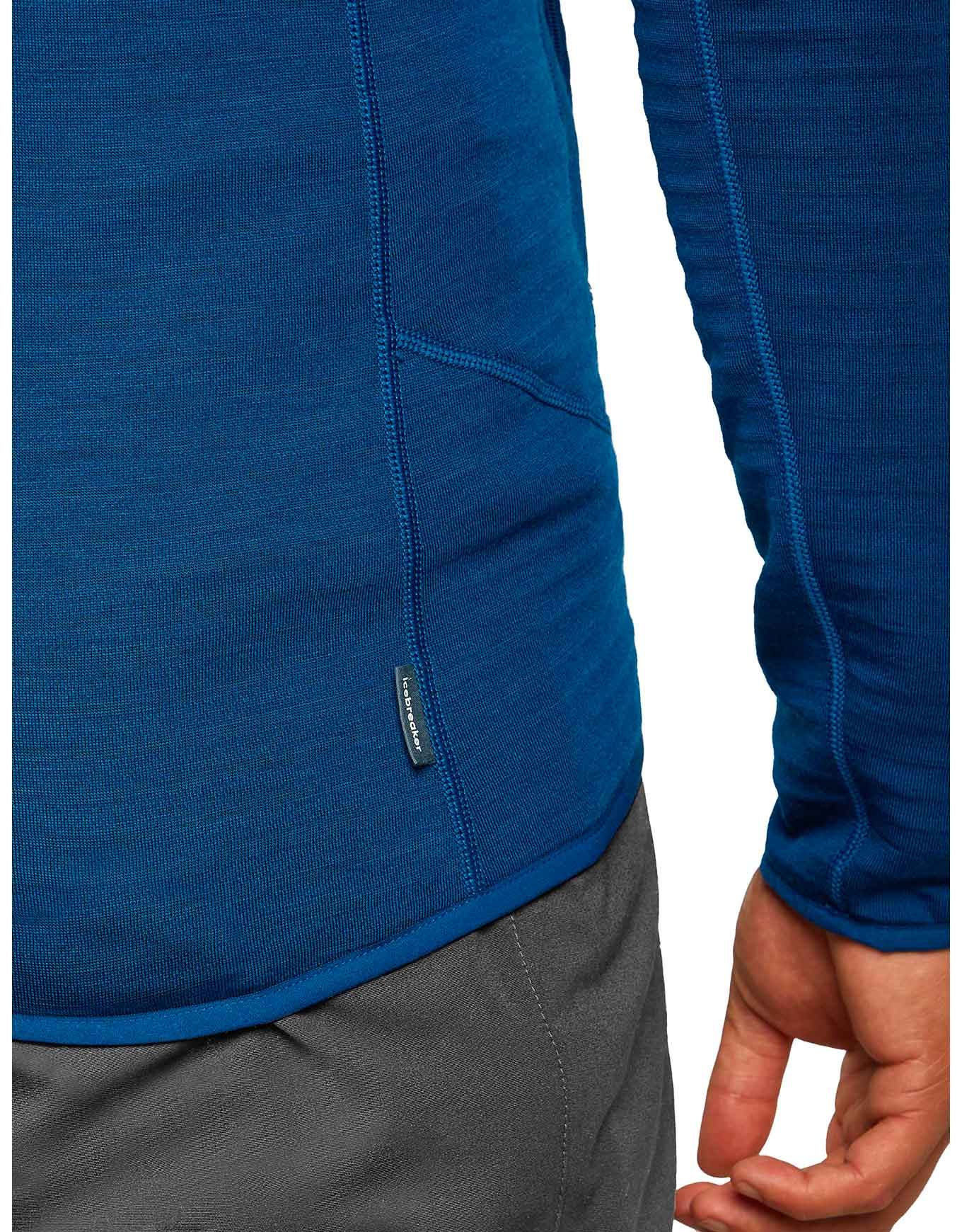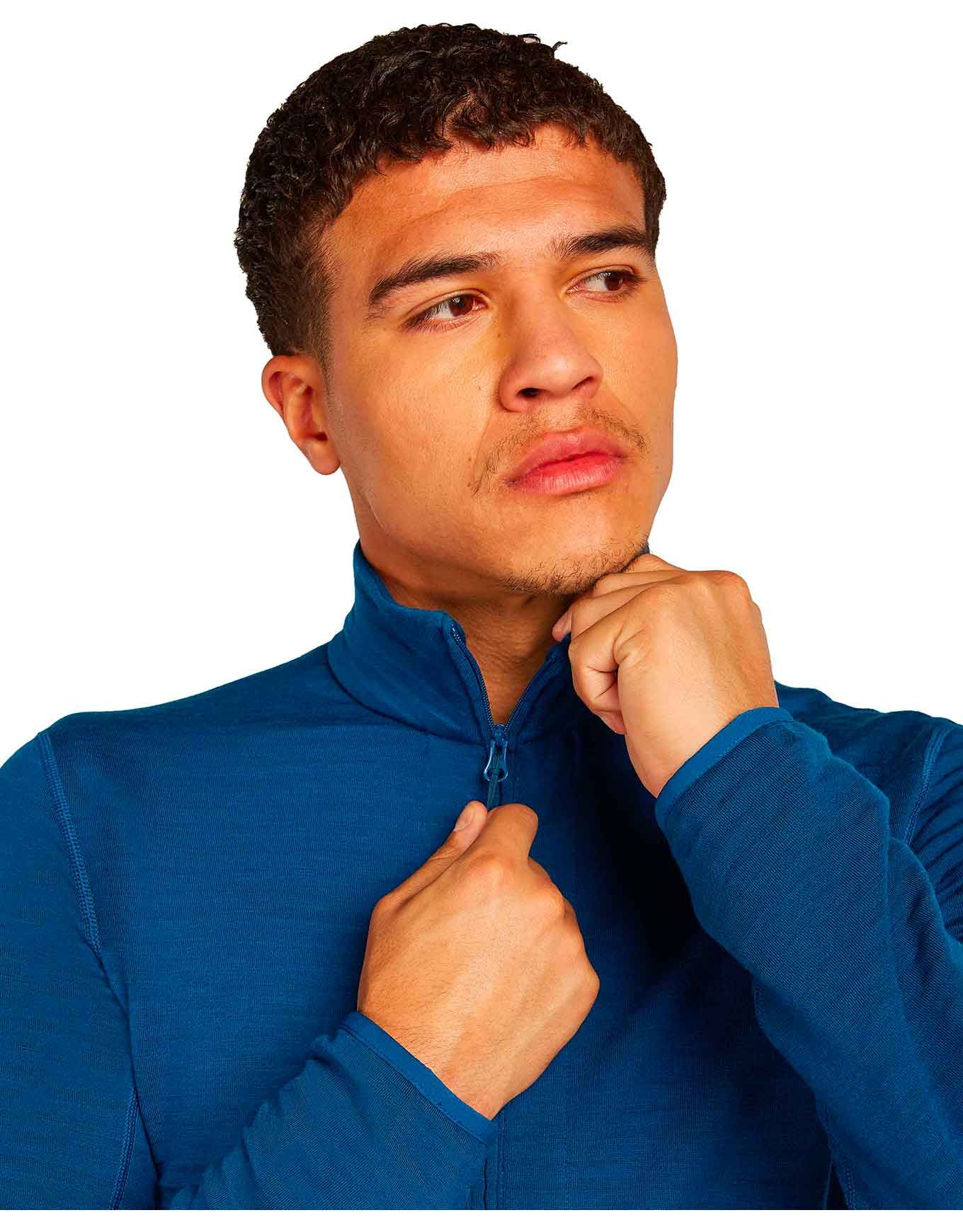 Polaine zippée Icebreaker Merino 400 RealFleece Descender LS Zip Atlantis homme, laine mérinos et Lyocell TENCEL™ pour chaleur hivernale, coupe ajustée, réversible, poches sécurisées, liberté de mouvement.